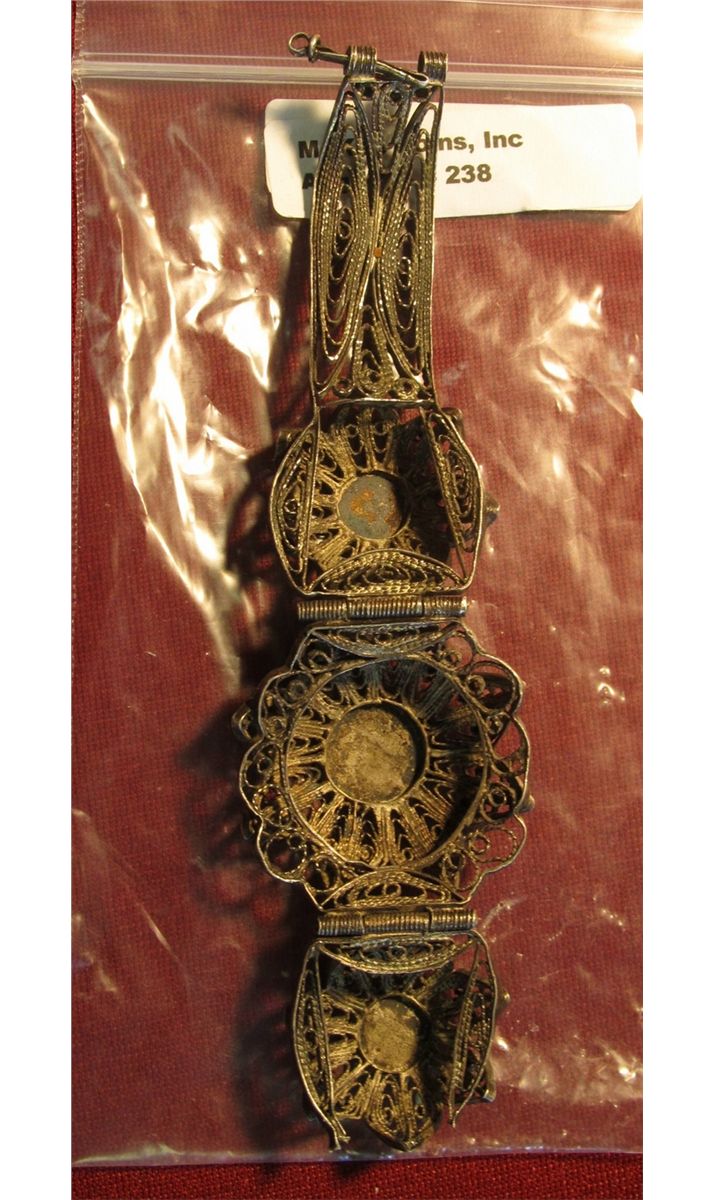 238. World War II Soldier Bring back War Souvenir. Part of an ornate Silver Bracelet engraved with a camel & rider, "Darlene", & "Iran/1944".