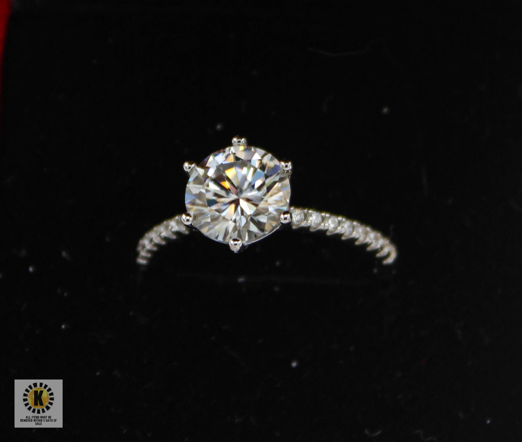 MOISSANITE STONE VVS D COLOR WITH 18 ROUND BRILLIANT CUT CUBIC ZIRCONIA SET IN THE SHANK SET IN 925 SILVER RING SIZE 7 RETAIL VALUE $975.00 **ALL ITEMS MUST BE REMOVED BY 5PM SATURDAY, APRIL 5TH 2025. ALL REMAINING ITEMS WILL BE SUBJECT TO A $6.00 PER DAY STORAGE CHARGE. ANY ITEMS REMAINING AFTER MONDAY, APRIL 21ST 2025 WILL BE CONSIDERED FORFEITED. NO REFUNDS WILL BE ISSUED FOR FORFEITED ITEMS. TO SCHEDULE A PICK UP APPOINTMENT CLICK HERE