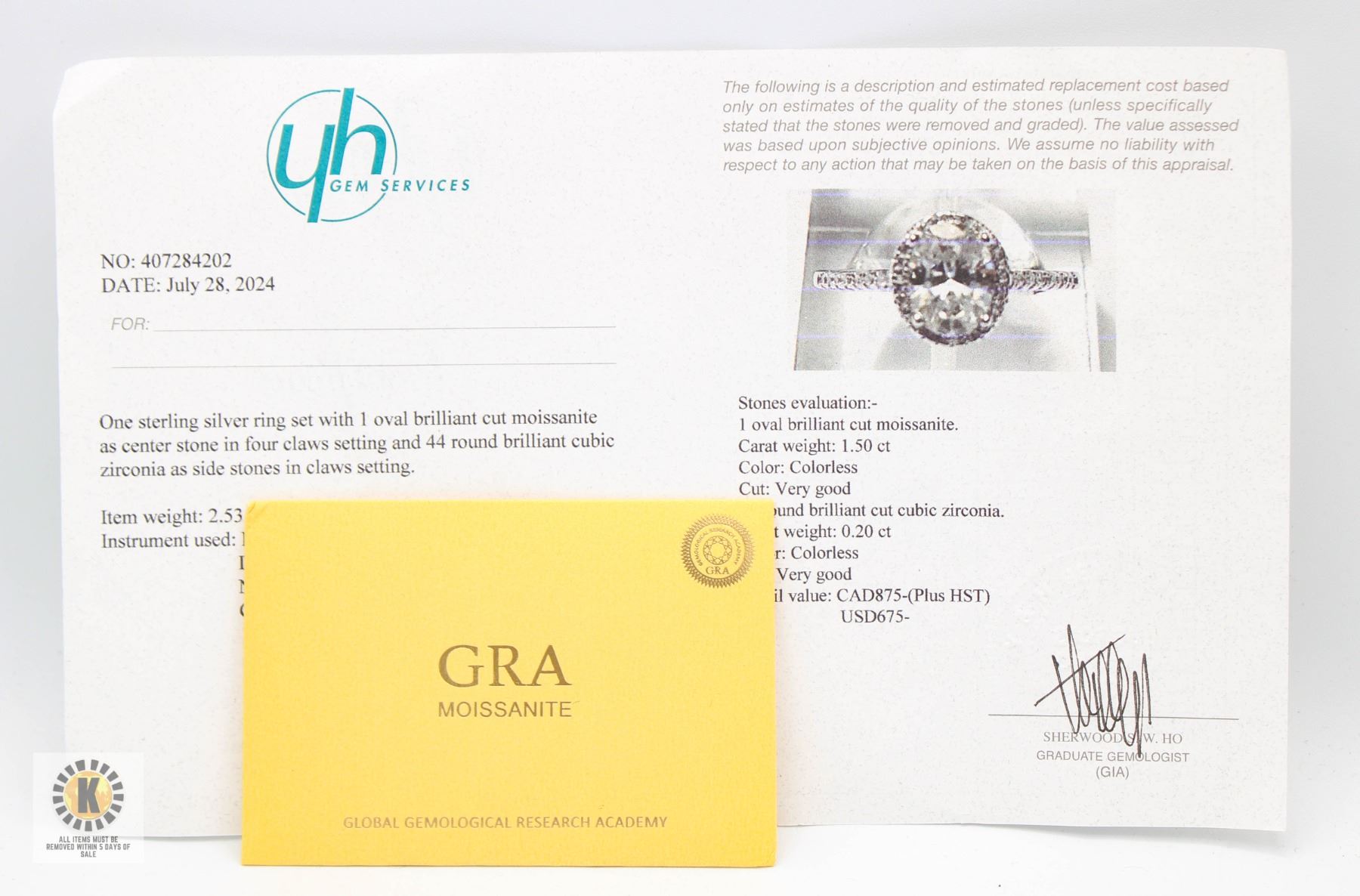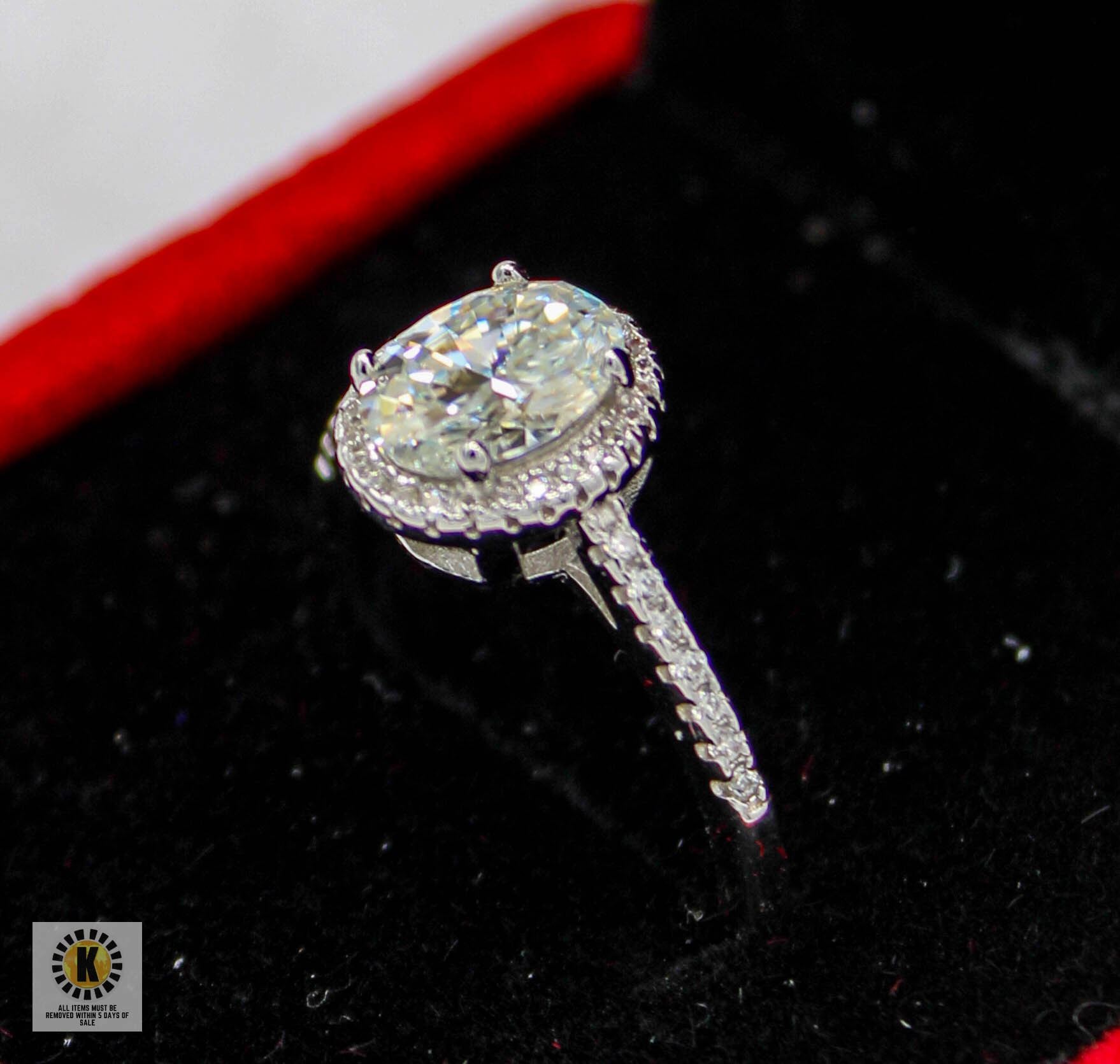 CUT MOISSANITE STONE VVS D COLOR WITH 44 ROUND BRILLIANT CUT CUBIC ZIRCONIA SET AROUND CENTER INCLUDING MORE SET IN THE SHANK SET IN 925 SILVER RING SIZE 6.5 RETAIL VALUE $875.00 **ALL ITEMS MUST BE REMOVED BY 5PM SATURDAY, APRIL 5TH 2025. ALL REMAINING ITEMS WILL BE SUBJECT TO A $6.00 PER DAY STORAGE CHARGE. ANY ITEMS REMAINING AFTER MONDAY, APRIL 21ST 2025 WILL BE CONSIDERED FORFEITED. NO REFUNDS WILL BE ISSUED FOR FORFEITED ITEMS. TO SCHEDULE A PICK UP APPOINTMENT CLICK HERE