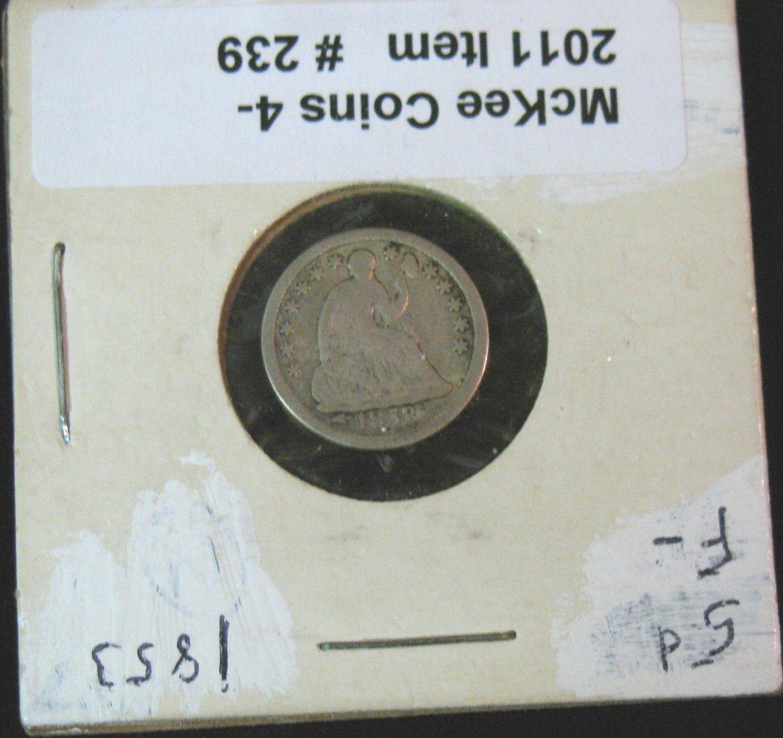 239. 1853 Arrows Seated Liberty Half Dime. F-12.