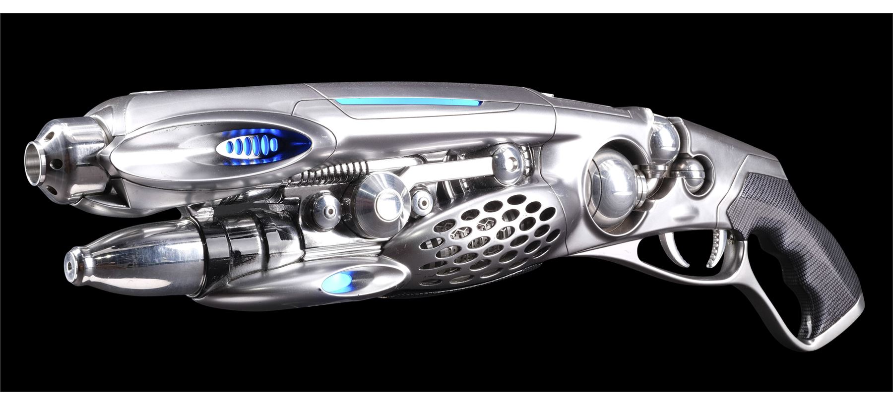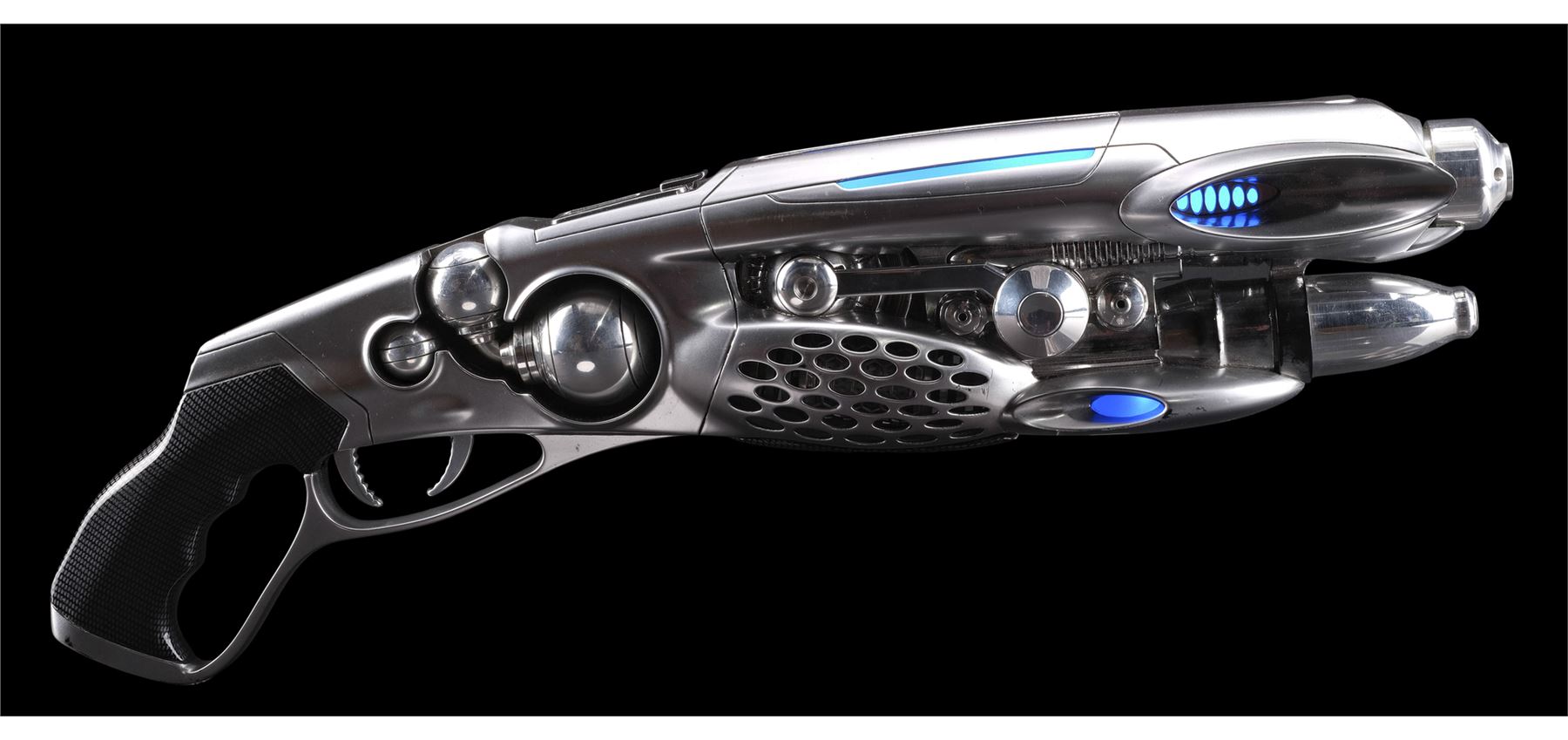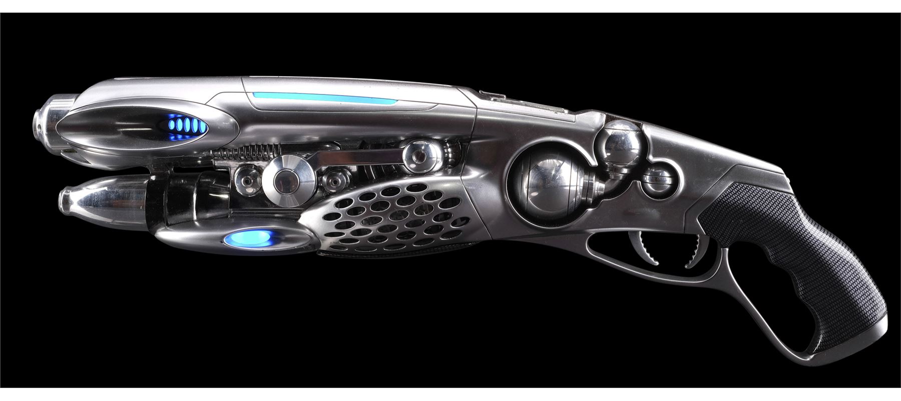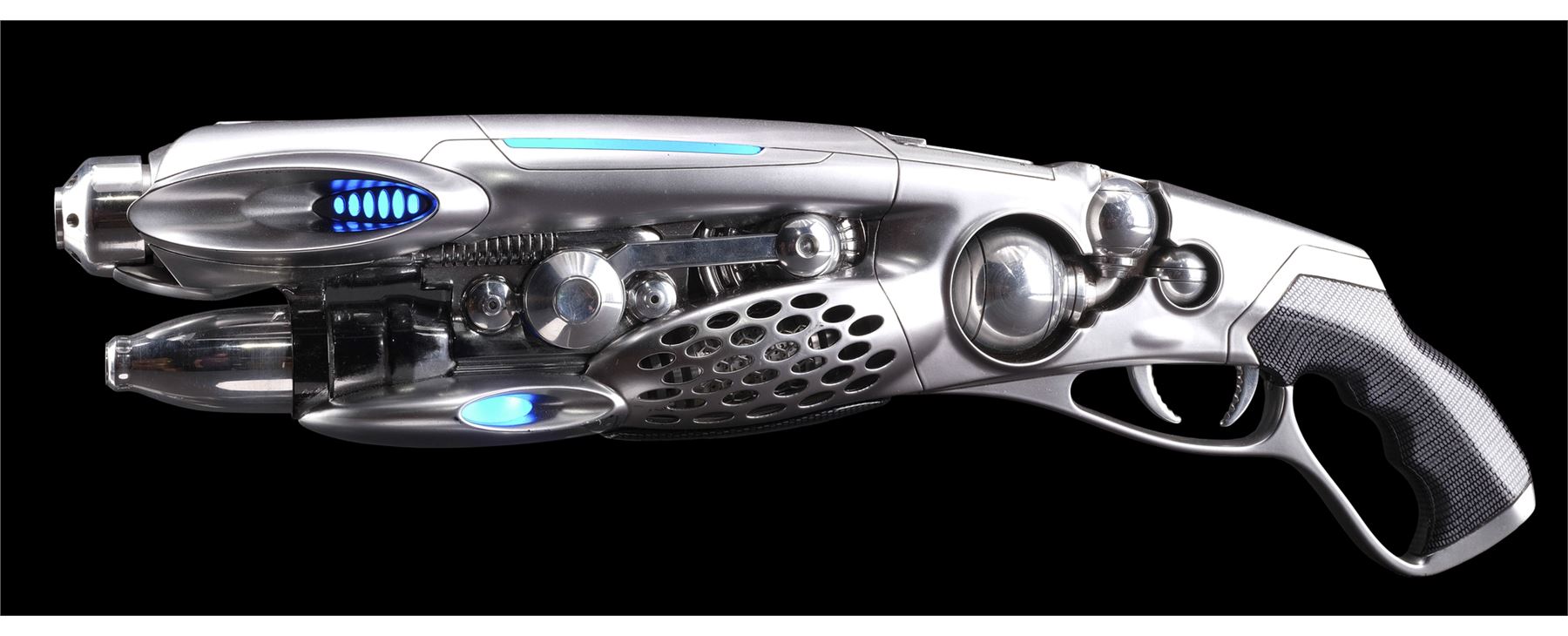 MEN IN BLACK 3 (2012) - Agent Kay's (as played by Tommy Lee Jones) Light-Up Shotgun - Agent Kay's (as played by Tommy Lee Jones) shotgun from Barry Sonnenfeld's Men in Black 3. After a brief phone call with his partner Agent Jay questioning Agent Kay's past and connection with Boris the Animal, Agent Kay retrieved his shotgun from his weapons stash in his apartment that sent him through a time portal when he activated it.
