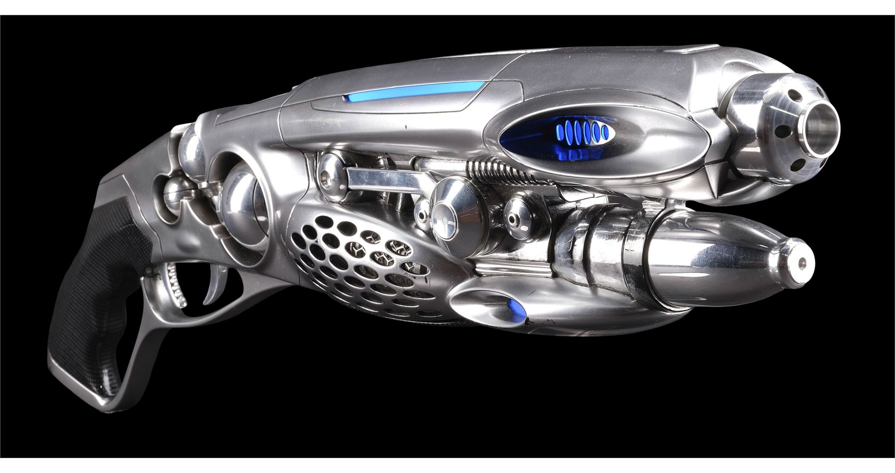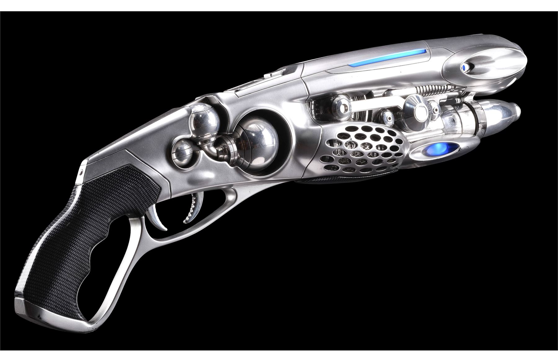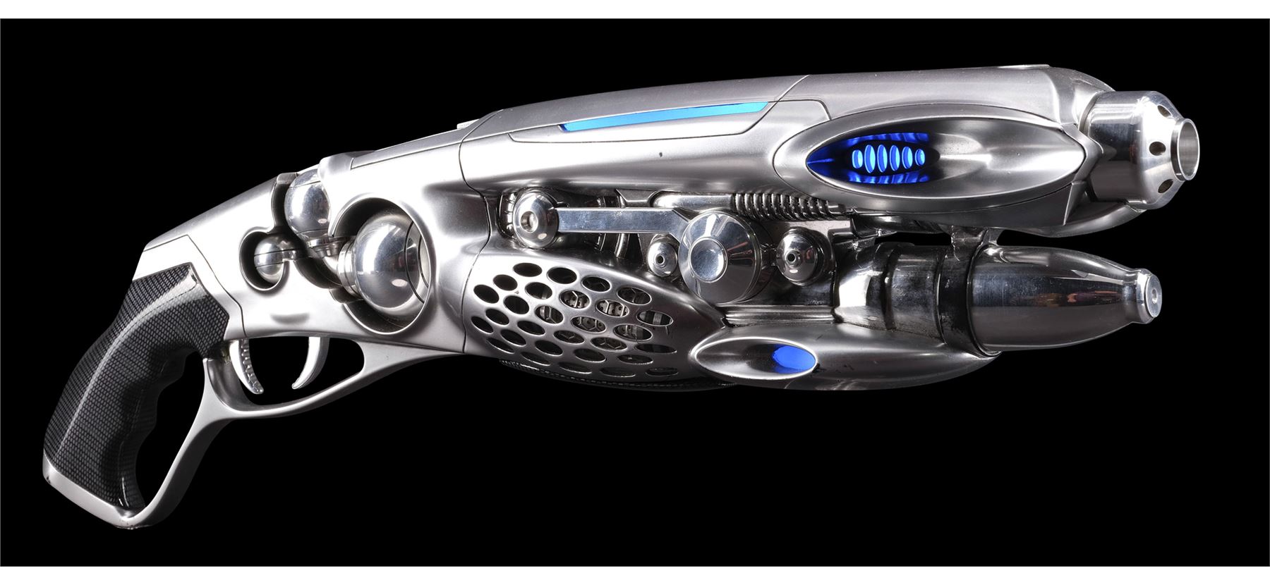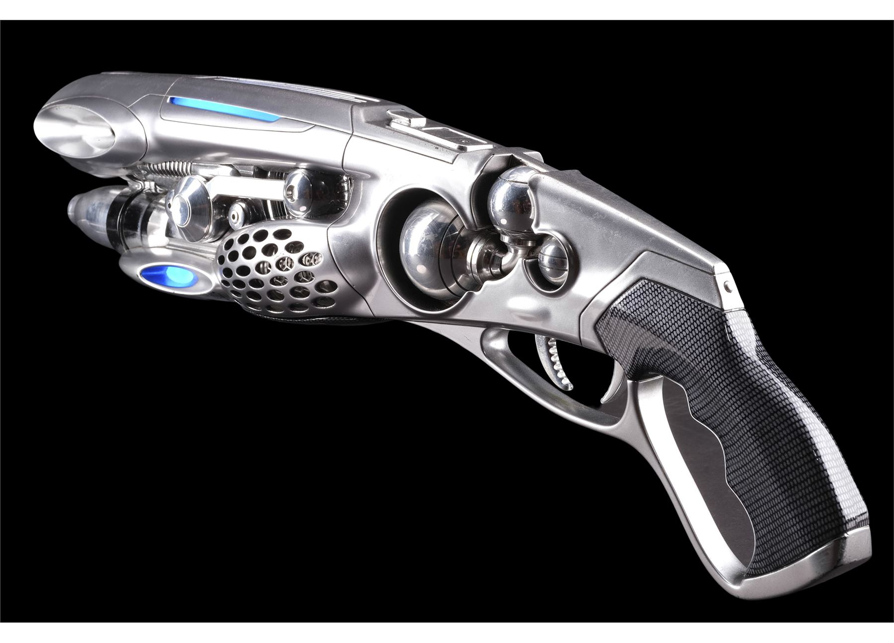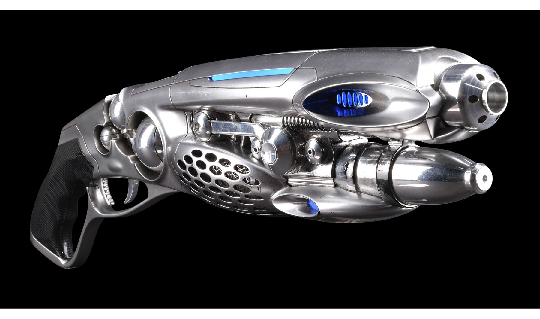 MEN IN BLACK 3 (2012) - Agent Kay's (as played by Tommy Lee Jones) Light-Up Shotgun - Agent Kay's (as played by Tommy Lee Jones) shotgun from Barry Sonnenfeld's Men in Black 3. After a brief phone call with his partner Agent Jay questioning Agent Kay's past and connection with Boris the Animal, Agent Kay retrieved his shotgun from his weapons stash in his apartment that sent him through a time portal when he activated it.