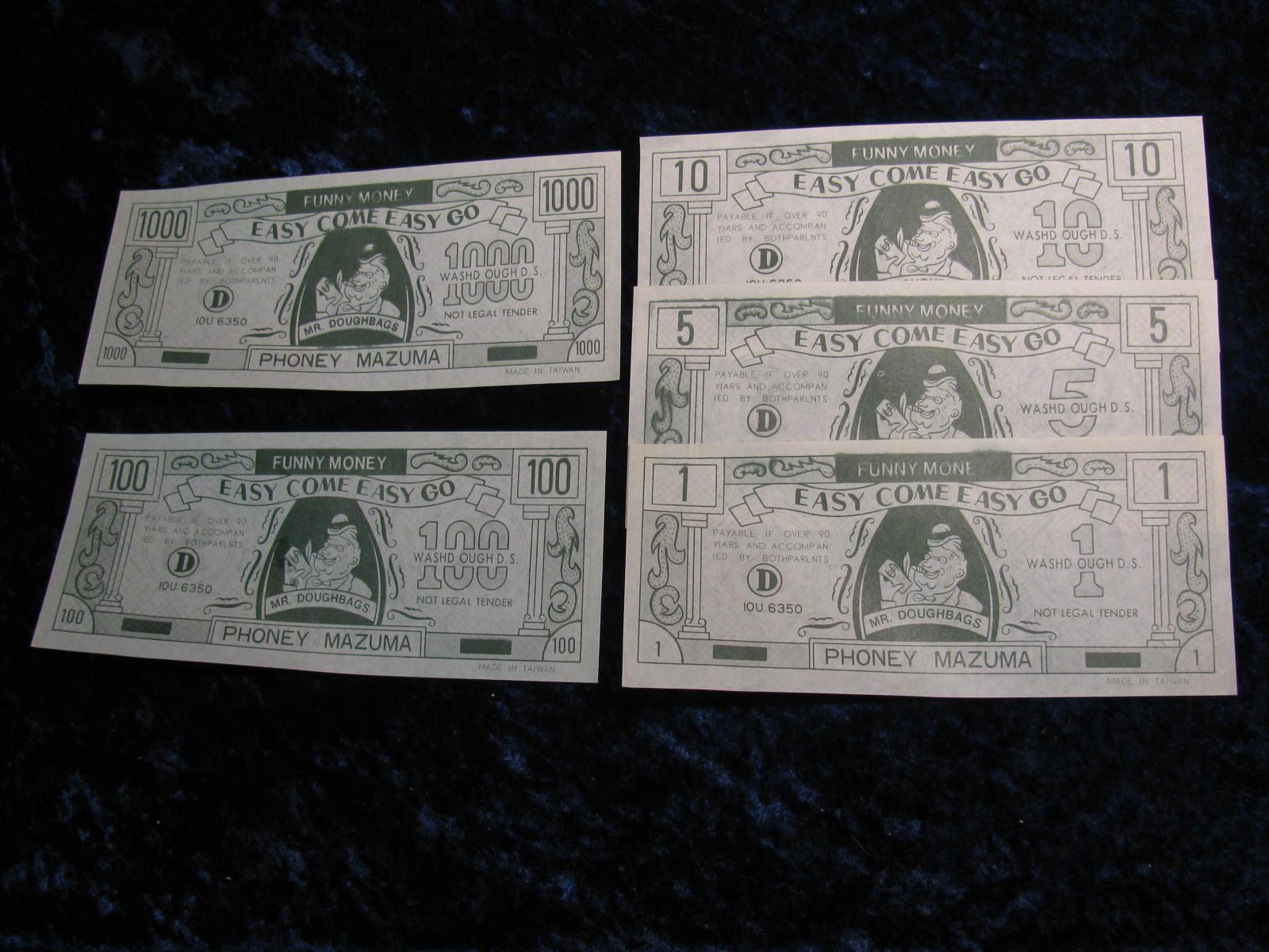 2390. Easy Cone & easy Funny Money 4-Different. 1, 5, 100 & 1000.