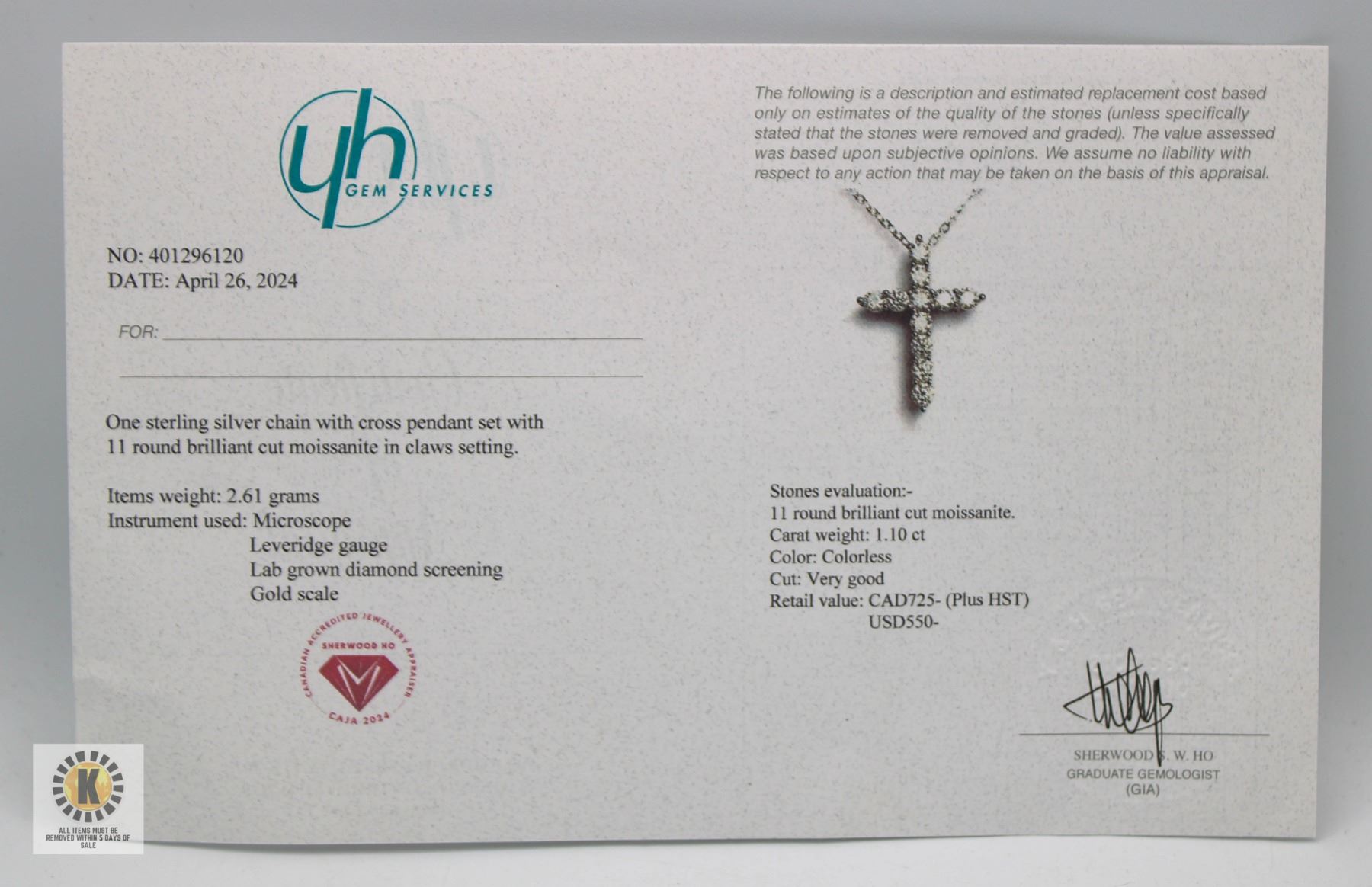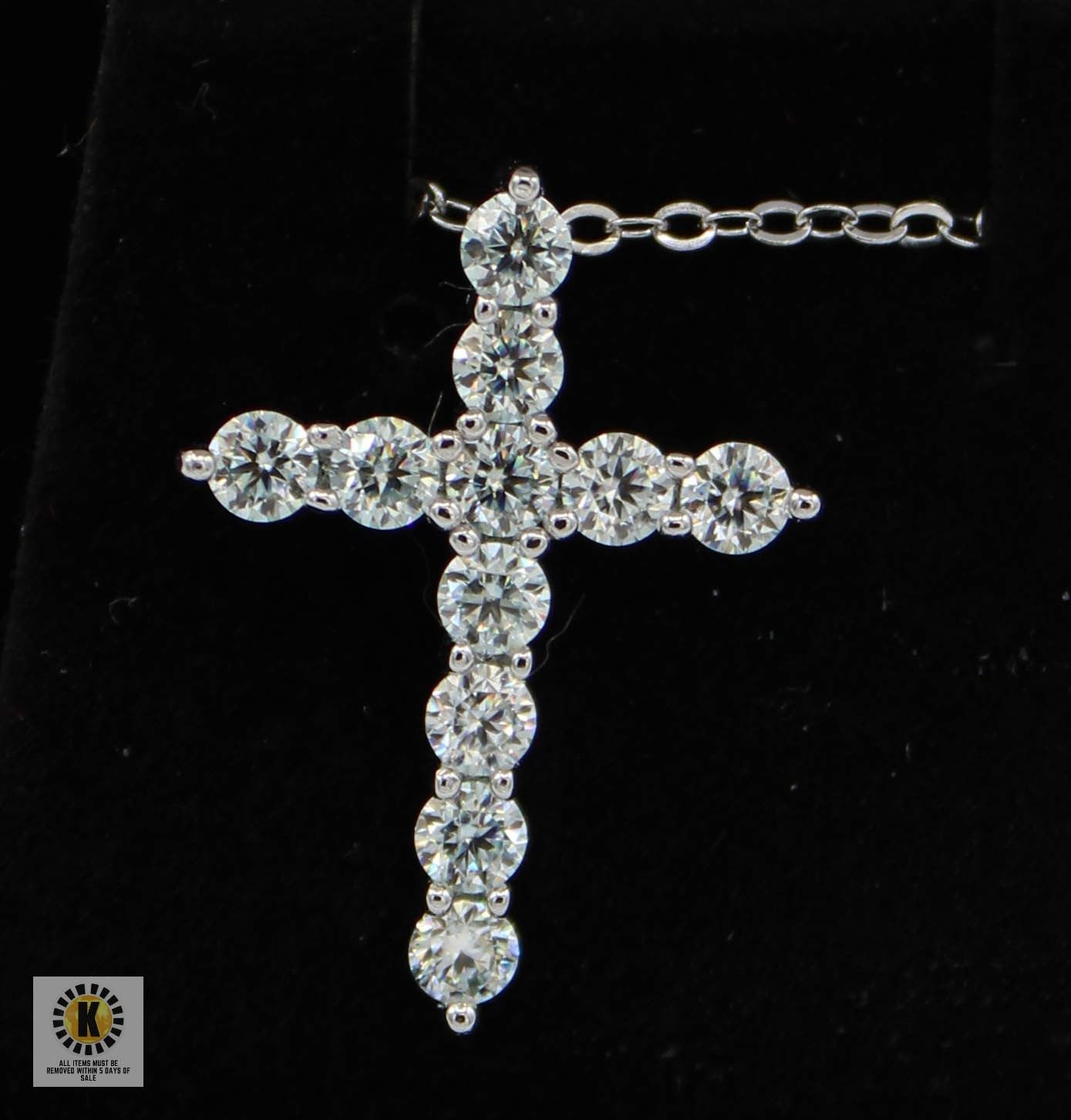 STONE VVS COLORLESS WITH THE 11 MOISSANITE SET IN THE CROSS SHAPE SET IN 925 SILVER PENDANT RETAIL VALUE $725.00 **ALL ITEMS MUST BE REMOVED BY 5PM SATURDAY, APRIL 5TH 2025. ALL REMAINING ITEMS WILL BE SUBJECT TO A $6.00 PER DAY STORAGE CHARGE. ANY ITEMS REMAINING AFTER MONDAY, APRIL 21ST 2025 WILL BE CONSIDERED FORFEITED. NO REFUNDS WILL BE ISSUED FOR FORFEITED ITEMS. TO SCHEDULE A PICK UP APPOINTMENT CLICK HERE