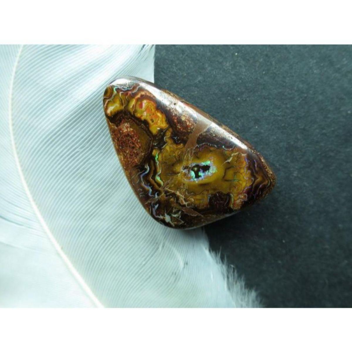 TYPE OF OPAL…...............BOULDER MATRIX/UNTREATED. FIELD/ORIGIN….................QUEENSLAND AUSTRALIA. COLOUR…..........................AS PER IMAGE. PATTERN…..........................AS PER IMAGE. NO OF PIECES….........................1. BRIGHTNESS RATING 1 TO 5. =4.1. DESCRIPTION…..........................GREAT VALUE TOP PATTERN BRIGHT AUSSIE BOULDER MATRIX OPAL. (opal colour and pattern as per image, the stone you see in pictures is the stone you get.)     -- Additional General Details about Opals to Inform the Knowing Bidder: Opal is a hydrated amorphous form of silica (SiO2·nH2O); its water content may range from 3 to 21% by weight, but is usually between 6 and 10%. Because of its amorphous character, it is classed as a mineraloid, unlike crystalline forms of silica, which are classed as minerals. It is deposited at a relatively low temperature and may occur in the fissures of almost any kind of rock, being most commonly found with limonite, sandstone, rhyolite, marl, and basalt. Opal is the national gemstone of Australia. The internal structure of precious opal makes it diffract light. Depending on the conditions in which it formed, it can take on many colors. Precious opal ranges from clear through white, gray, red, orange, yellow, green, blue, magenta, rose, pink, slate, olive, brown, and black. Of these hues, the black opals are the rarest, whereas white and greens are the most common. Opals vary in optical density from opaque to semi-transparent and show opalescence, a form of iridescence. There are 9 separate factors that contribute to the price of an Opal. These factors are: Color Direction / Play of Color Pattern Body tone Brightness Shape Inclusions Where the Opal was mined Country of Origin At Lightning Ridge, in Australia, a committee values opal miner’s opals each Saturday. Several opal appraiser price each opal by carat with the final value determined by the price per carat. COLOR In order of evaluation value, the most valuable color is a dominant red, then orange, green, blue and purple. Electric blue Opals is the most valuable of the blues. DIRECTION OF COLOR Opals are a gemstone that dramatically change appearance based on the angle of view. When an Opal is at it’s brightest, this is called its ‘facing’/ andle. The direction of color will affect the price because it determines how versatile the Opal is. PATTERN Opals that have a rare or unique pattern are more valuable. The Harlequin patternis the rarest and most loved pattern in opals but it is very rare. A True harlequin pattern is a mosaic broad pattern, angular close set of colors. Floral patterns are sometimes called floral harlequin.Some top patterns are Mackerel, Block, Broad flash, Rolling-flash, Pin-fire, Rainbow and most sought out Ethiopian opal is the Honeycomb pattern. BODY TONE Opals are grouped in 9 sub categories N1 to N9 with N1 the darkest opal and N9 the lightest. Black opals are generally the most valuable and have a body tone of N1 to N4 Opals with N5 to N6 considered a semi black or dark opal. Body tone N7 to N9 are called crystal opals. BRIGHTNESS The Opal brightness guide was produced by the Australian opal association along with the body tone guide. There are 7 sub Brightness ratings with B1 the brightest to B7 the dullest. The brighter the Opal, the more expensive will be its value. SHAPE Oval stone are generally considered more valuable than free form, except with boulder opals where free form is considered desirable. The shape of the Opal once again determines how versatile it is. Oval stones generally have the best face of color and can be used in a variety of applications. Opal is almost always cut in a cabochon. A cabochon stone is more valuable when it has a high. This is due to the fact that cabochons make ideal ring stones. INCLUSIONS Inclusions and potch lines and are not to be confused with cracks. A crack line reflects light and greatly devalues an Opal. A potch line has no light reflection and these opals are generally valued lower but can make artistic picture patterns. Some Opals will have a vegetation pattern from the inclusions and this is popular as the opal has replaced some of the tree or vegetation. Sand or windows also reduce the value of the opal. A window is a gap on the bottom where potch has not formed and opal is transparent. Ethiopian opal can have a ghost or phantom inclusions or vegetation matter. These types of inclusions are generally accepted as reasonable in this type opal. OPAL FIELD SOURCE The end buyer or wholesaler might not be able to consider this factor. But in the trade certain mines have a reputation of producing good quality rough that makes excellent stones. This happens in Australian and Ethiopian opal fields. Even the depth of the mine can greatly effect value. Opal doublets and triplets do not have the same stringent criteria as solid opals and are valued considerable less. It is important to be able to pick a doublet opal compared to a solid and this can be difficult when the opal is set into jewelry. COUNTRY OF ORIGIN Australia has a worldwide reputation as the world’s most expensive opals. Many countries now produce good opals like Ethiopia, Mexico and Brazil. Each country’s opals may be unique and this factor helps determine the Opal price. Regardless of the country of origin, all opals are rare, valuable and unique. Opal Stones rank very high as an appreciating asset.       Â