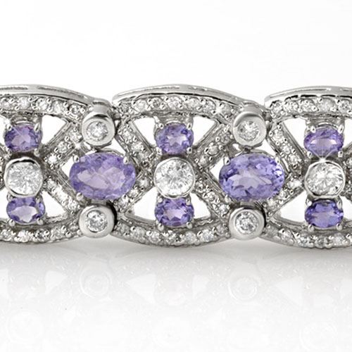 24.0 CTW Tanzanite & Diamond Bracelet 14K White Gold ---- Luxury Designer Brand Bracelet Appraised Retail Price at $72,650 ---- SKU Number US13461 14k White gold Bracelet Size is 7 Inches, Bracelet measuring approx. 7" x 11/16", weighing in total approx. 60 grams. Made in the USA and is stamped 14k, Main stone 15 carat total weight containing 36 pieces of Intense Violet Blue color with AAA quality Oval shape cut Tanzanite , Stone #2 9 carat total weight containing 360 pieces of H-I color with VS/SI quality Round shape cut