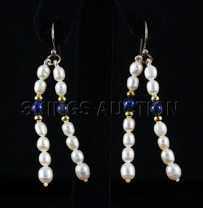 24.00CTW 1.5in. WHITE&BLUE FRESHWATER PEARL HOOK EARRIN **|**|** 4-5MM DOUBLE ROW FRESHWATER PEARL SILVER HOOK EARRING ; MSRP: $300