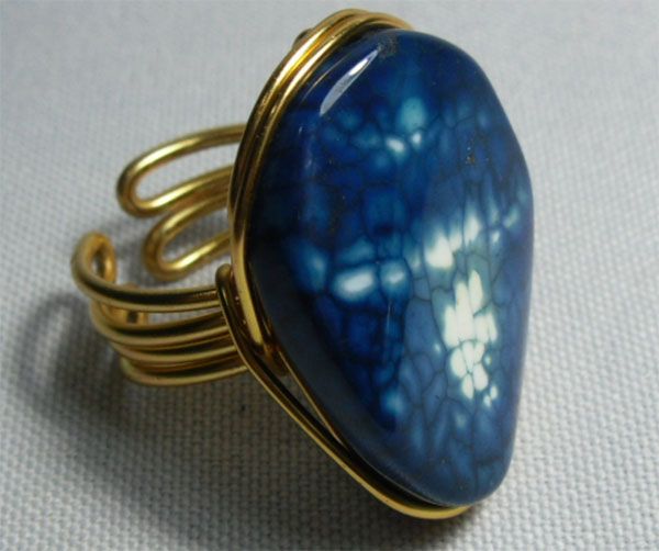 24.00CTW BLUE AGATE ALUMINUM WIRED ADJUSTABLE RING **|**|** 24.00CTW BLUE AGATE ALUMINUM WIRED ADJUSTABLE RING ; MSRP: $0