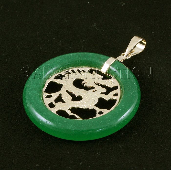 24.00ctw Good Fortune Dragon Jade Silver Pendant **|**|** Chinese Green Jade Pendant with Yellow Silver Dragon measuring 29.62x29.59mm ; MSRP: $300