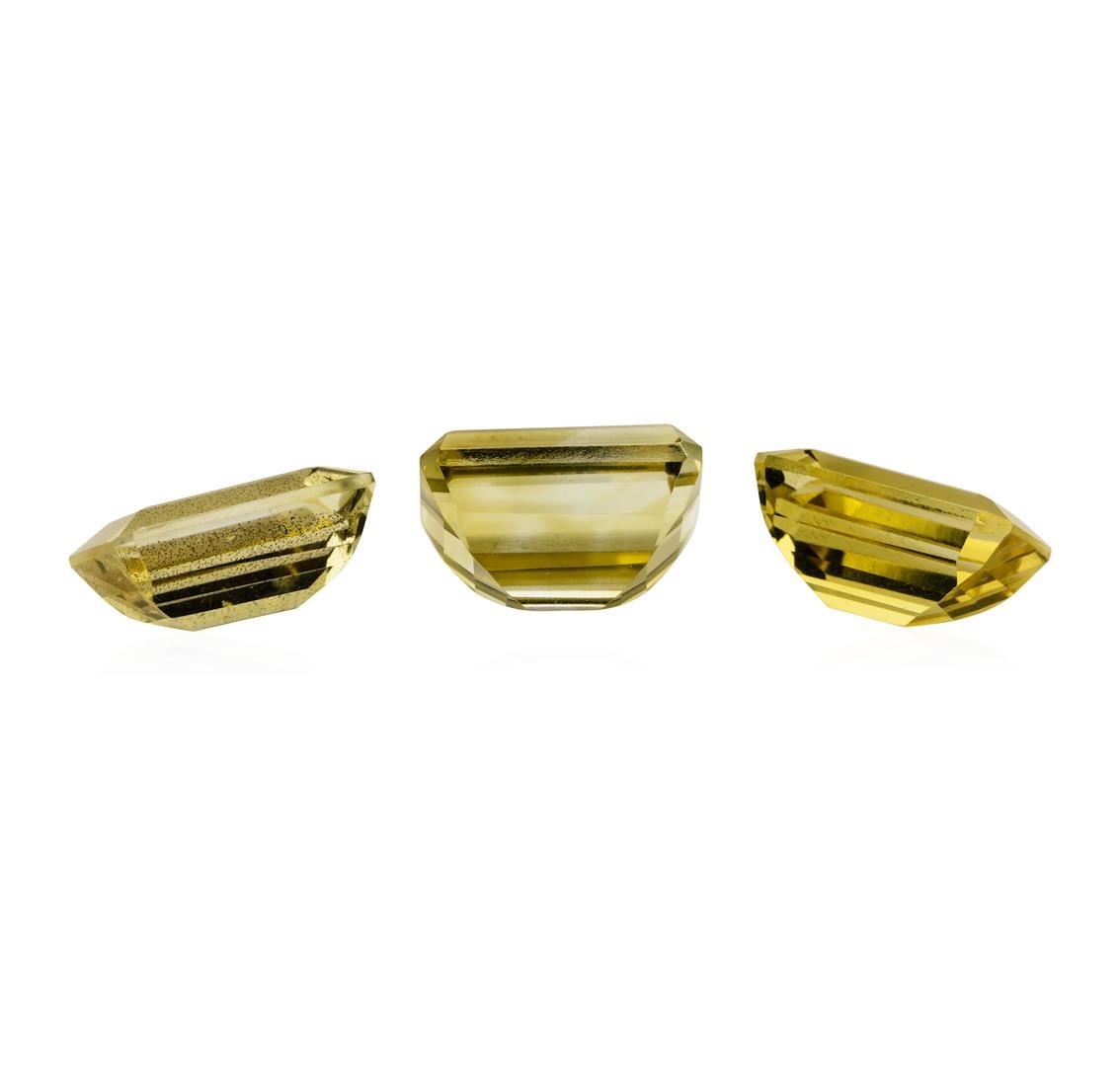 One natural emerald cut citrine quartz parcel of three with an exact weight of 24.04ctw., clarity is eye clean, slightly yellowish orange, medium light. Gemological Appraisals Services estimates the retail value at $721.2 GAS Appraised.
