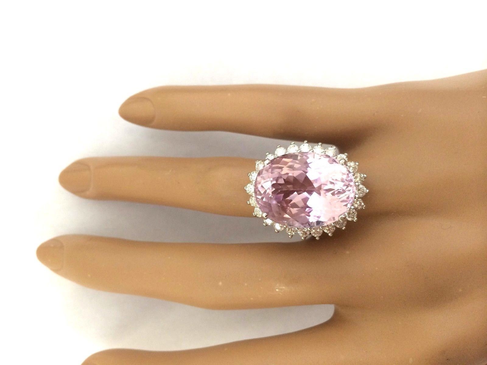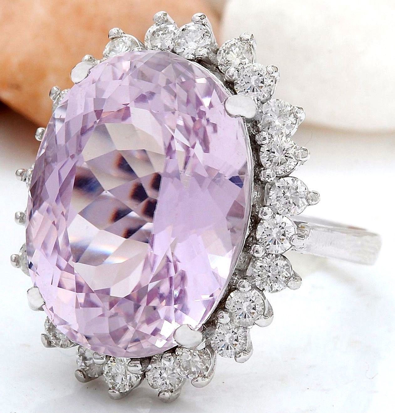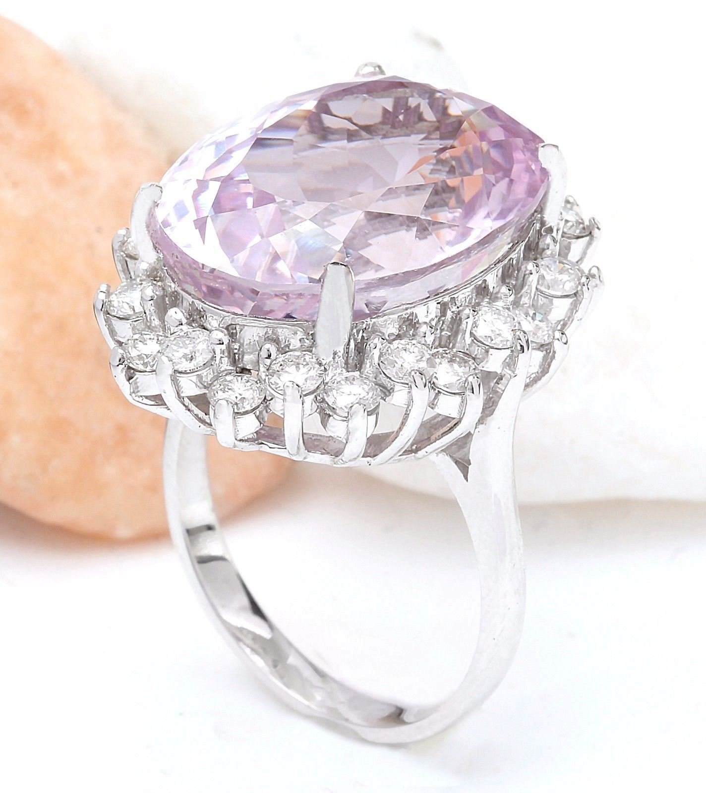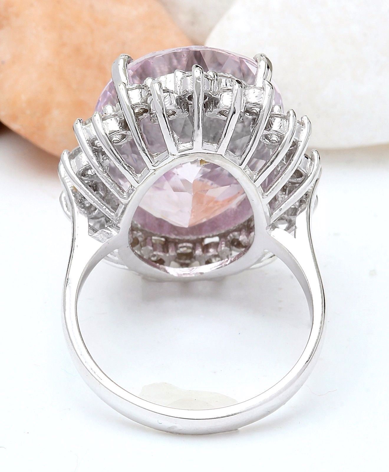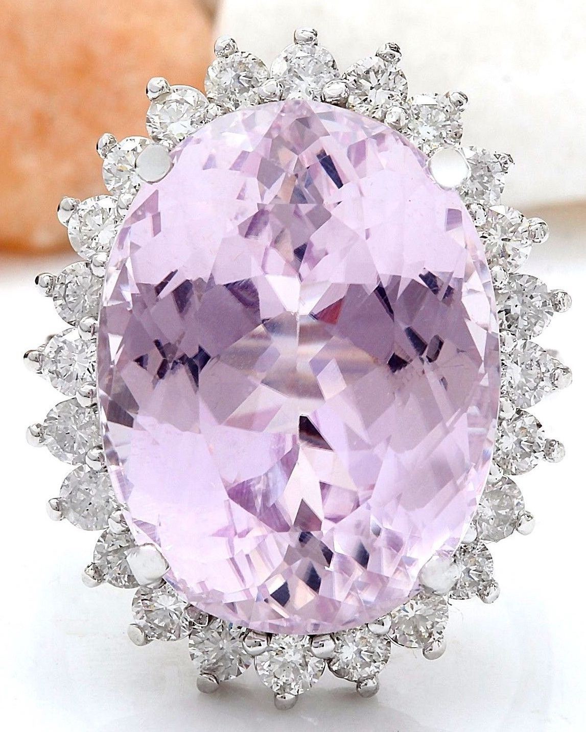 24.08 Carat Natural Kunzite 14K Solid White Gold Diamond Ring