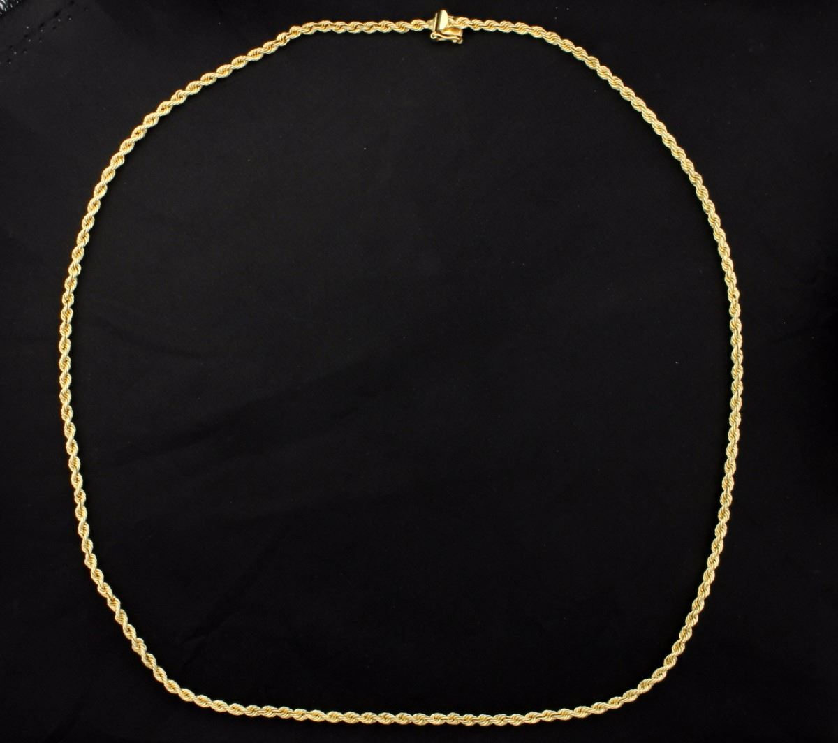 In 14K yellow gold the chain is 3mm thick. 22.4g