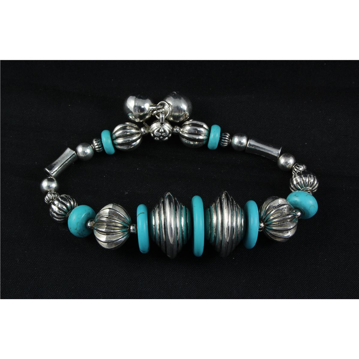 24.10g Elastic Chime Turquoise Silver Bracelet **|**|** Unique Design Elastic Turquoise Chime Charm Silver Bracelet ; MSRP: $300