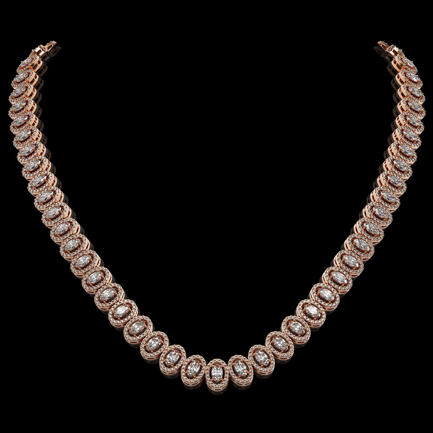 REF-2092G6W - SKU: 42939 ---- 24.19 ctw Oval Cut Diamond Micro Pave Necklace 18K Rose Gold