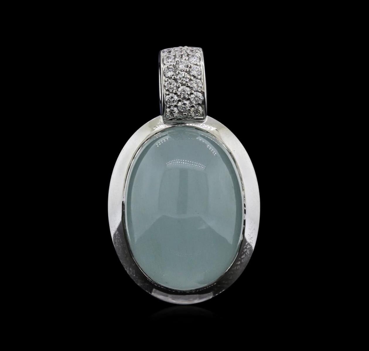 One pendant with chain featuring: 18KT white gold weighing 20.88 grams containing one green quartz with a total weight of 24.19ct and diamonds with a total weight of 0.28ct.