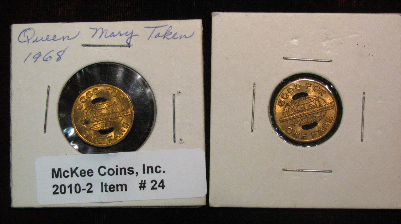 24. (2) Queen Mark Transportation Tokens. BU. Long Beach, Ca. Good for One fare.