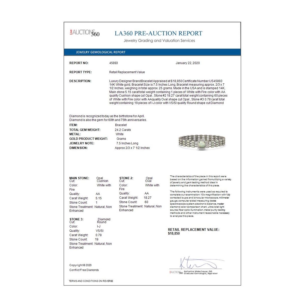 REF-342Y9X - SKU: 45893 ---- 24.2 ctw Opal & Diamond Bracelet 14K White Gold