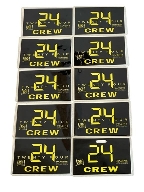 Set of 10 24 ID crew badges from the production of the action drama television series '24' (2001-2010).