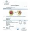 Fourteen karat (14K) yellow gold ruby and diamond ring. One (1) oval and sixteen (16) round cut ruby corundum gemstones are prong mounted in the center of the ring. Round brilliant cut diamonds accent the ring around the center gemstones. The ring is cast stamped "14K" and has a gross weight of 12.4 grams. Diamond(s): Shape: Round brilliant cut. Weight: 0.86 carat (16pcs). Average clarity: SI2-I1. Average color: H-J. Symmetry: Very good. Polish: Very Good. Gemstone(s): Gemstone: Ruby Corundum. Nature: Natural. Shape: Oval and round, faceted. Quantity: 17, mounted ( 1 center and 16 side stones). Weight: 24.22 carat total (23.15ctw. Center and 1.07ctw. Side stones). Center stone dimensions: Length-18.53 mm. ; Width-16.27 mm. Bulge: Visible. Clarity: SI, type 2/3. Color: Red (5/5). Symmetry: Very good. Color intensity: Medium. Transparency: Transparent. Tone: Dark. Enhancements: Indications of high temperature heat treatment, with glass and flux additives. Metal(s): Metal: Gold, stamped. Purity: 14K. Color: Yellow. Condition: Excellent. Finish: High polish. GGA Appraised at $12,180.00.