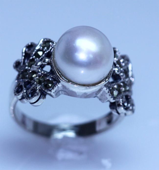 24.25 CTW PEARL ANTIQUE LOOKING JEWELRY .925 STERLING S **|**|** 24.25 CTW PEARL RING ANTIQUE LOOKING JEWELRY .925 STERLING SILVER ; MSRP: $200