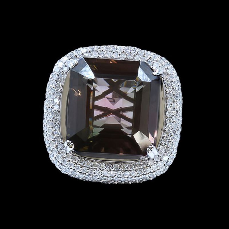 14K W/G NATURAL BIO Tourmaline RING :16.50GRAM /BIO TOURMALINE :24.25CT/ DIAMOND RD :4.40CT/#GVR1292