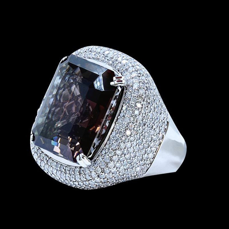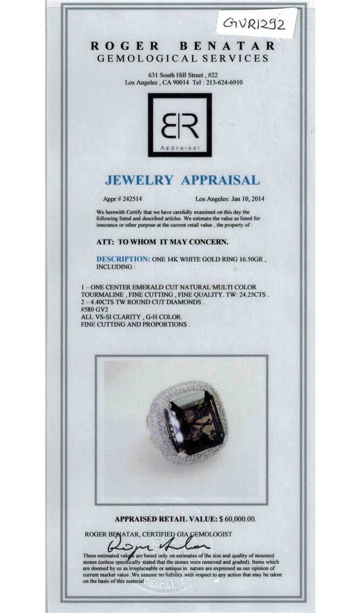 14K W/G NATURAL BIO Tourmaline RING :16.50GRAM /BIO TOURMALINE :24.25CT/ DIAMOND RD :4.40CT/#GVR1292