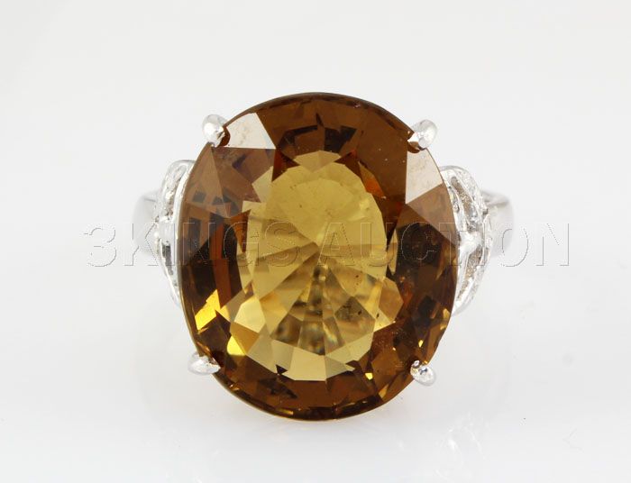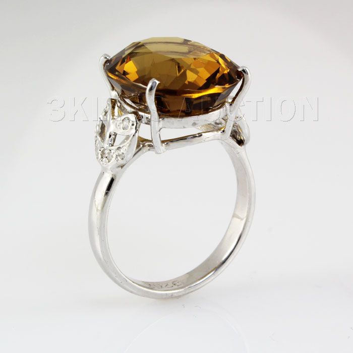 24.28CTW Big Stone Yellow Topaz Silver Ring **|**|** 15x13mm Yellow Topaz with CZ Diamond Fashion Silver Ring; ring size 6.5 ; MSRP: $1100