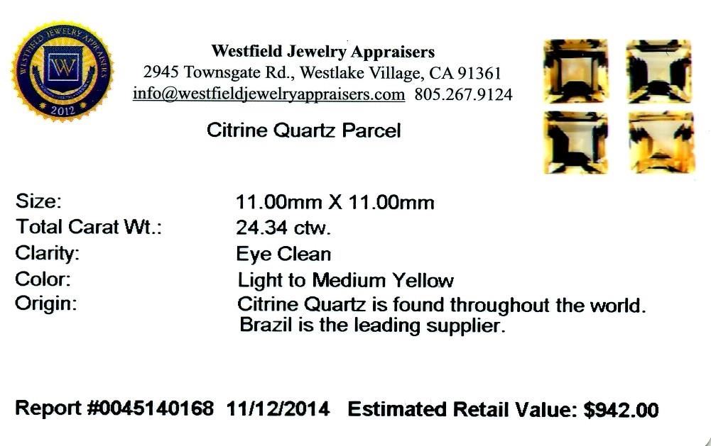 24.34cts Square Cut Citrine Quartz Parcel. Westfield Appraised at $942.00.
