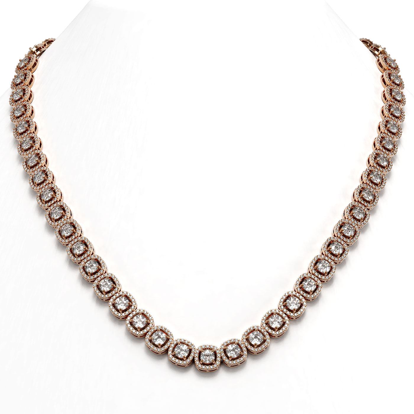24.4 ctw Cushion Cut Diamond Micro Pave Necklace 18K Rose Gold