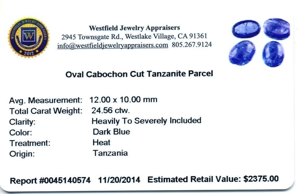 24.56ctw. Oval Cabochon Cut Tanzanite Parcel. Westfield Appraised at $2,375.00.
