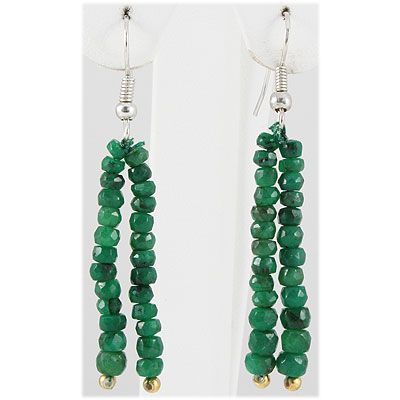 24.57ct 2 Row Faceted Emerald Silver Hook Earring **|**|** Double Line Micro Faceted Natural Emerald Beads Gemstone Silver Hook Earring 4-4.5mm ; MSRP: $300