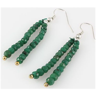 24.57ct 2 Row Faceted Emerald Silver Hook Earring **|**|** Double Line Micro Faceted Natural Emerald Beads Gemstone Silver Hook Earring 4-4.5mm ; MSRP: $300