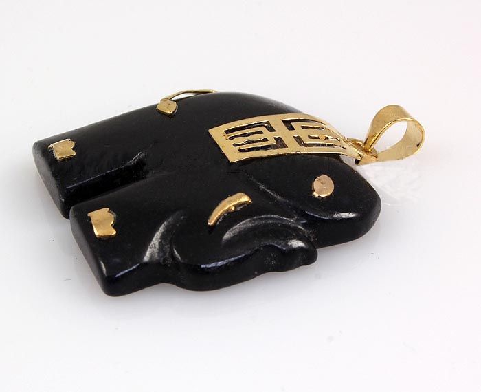 24.66CTW BLACK JADE ELEPHANT GOLD PLATED PENDANT **|**|** 18K GOLD PLATED BLACK COLOR JADE ELEPHANT SILVER PENDANT MEASURING 25.14X24.93MM ; MSRP: $300