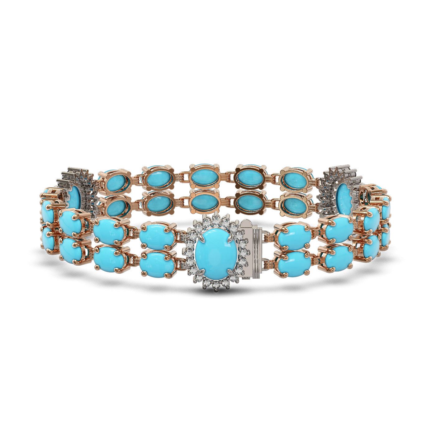 SKU: 44448 ---- 24.67 ctw Turquoise & Diamond Bracelet 14K Rose Gold