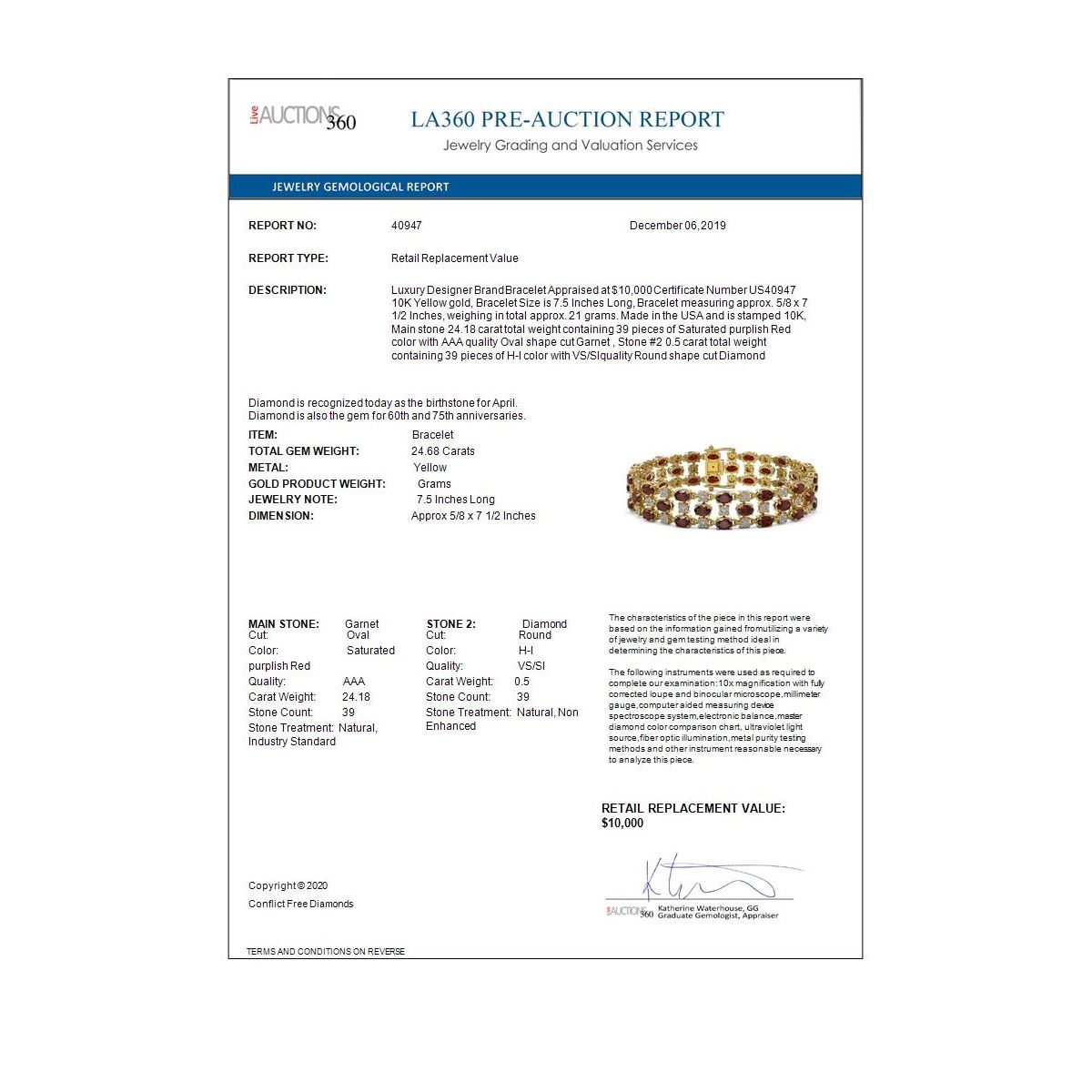 REF-227X3A - SKU: 40947 ---- 24.68 ctw Garnet & Diamond Bracelet 10K Yellow Gold