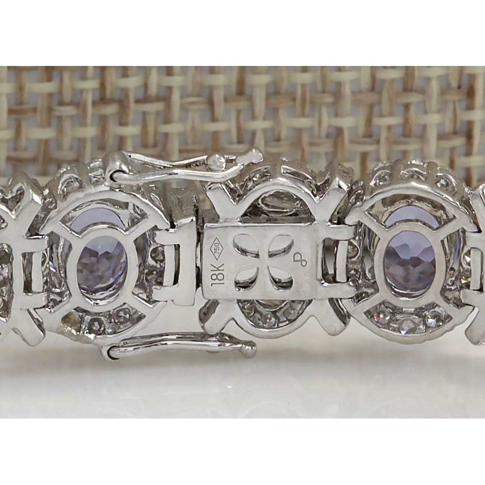 24.70 CTW Natural Tanzanite And Diamond Bracelet In 14K Solid White Gold