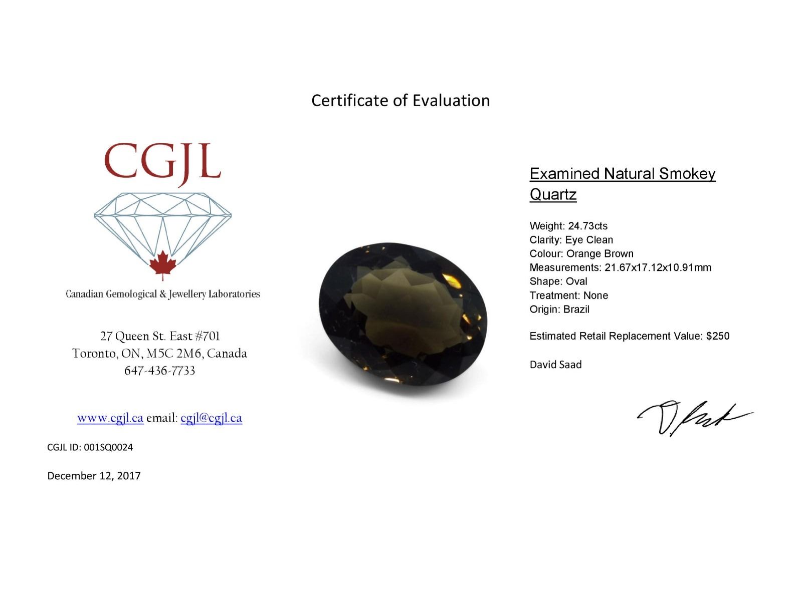 One 24.73ct Oval Smokey Quartz Gemstone.