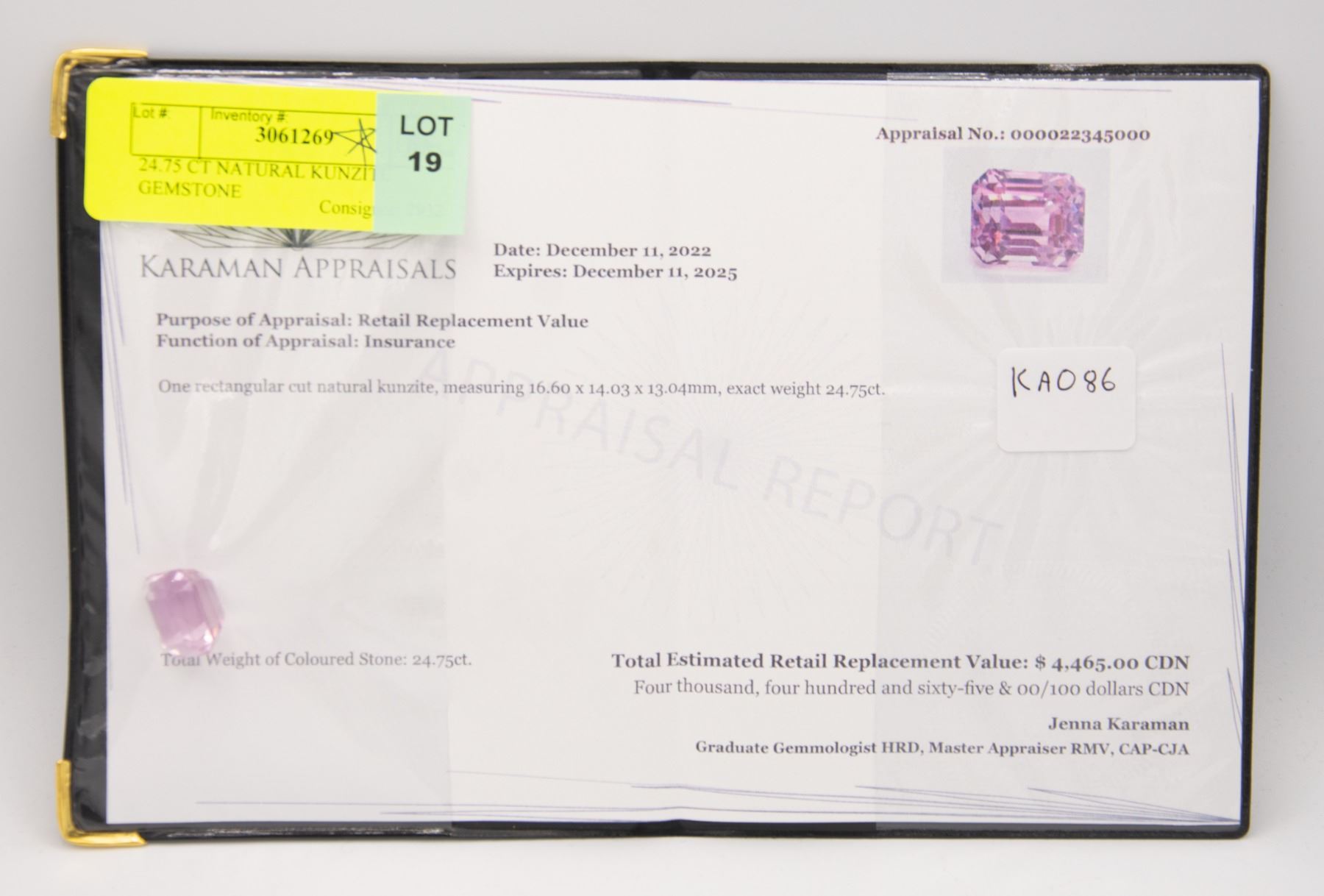 RECTANGULAR CUT MEASURING 16.60 X 14.03 X 13.04mm, COMES WITH APPRAISAL FROM KARAMAN APPRAISALS, ESTIMATED RETAIL REPLACEMENT VALUE $4,465.00 **ALL ITEMS MUST BE REMOVED BY 5PM SATURDAY, APRIL 15TH 2023. ALL REMAINING ITEMS WILL BE SUBJECT TO A $6.00 PER DAY STORAGE CHARGE. ANY ITEMS REMAINING AFTER MONDAY, APRIL 30TH, 2023 WILL BE CONSIDERED FORFEITED. NO REFUNDS WILL BE ISSUED FOR FORFEITED ITEMS. TO SCHEDULE A PICK UP APPOINTMENT CLICK HERE