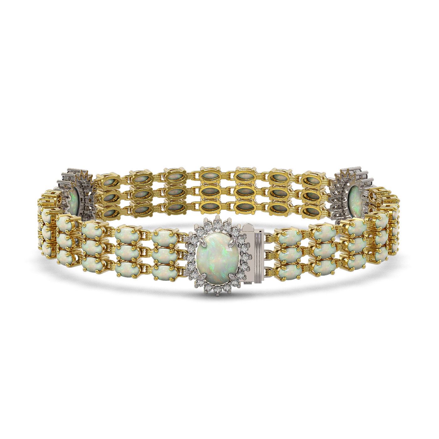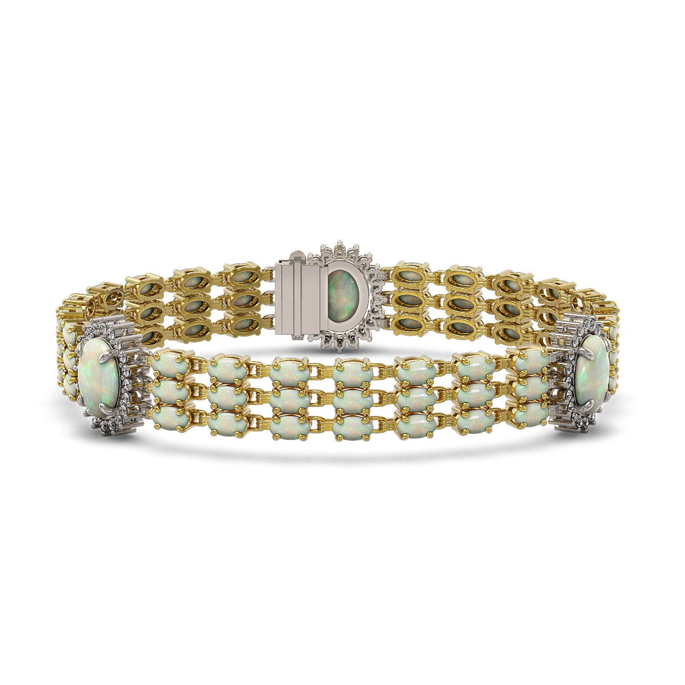 SKU: 45268 ---- 24.76 ctw Opal & Diamond Bracelet 14K Yellow Gold