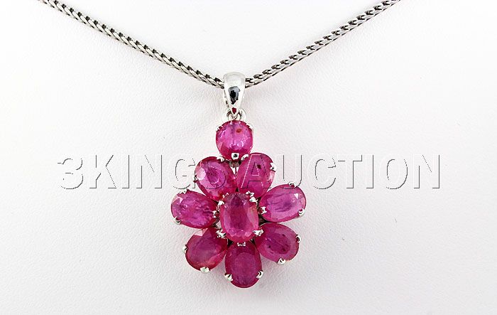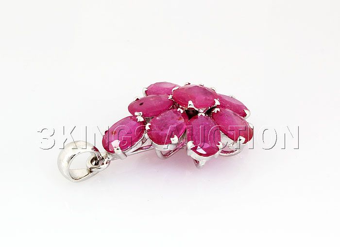 24.83CTW Natural Pink Ruby-Sterling Silver Pendant **|**|** Oval Shape Pinkish Ruby in Flower Design Silver Pendant; Size: 8x6mm; ctw: 13.95; stone count: 9; gram weight: 2.18 ; MSRP: $1100
