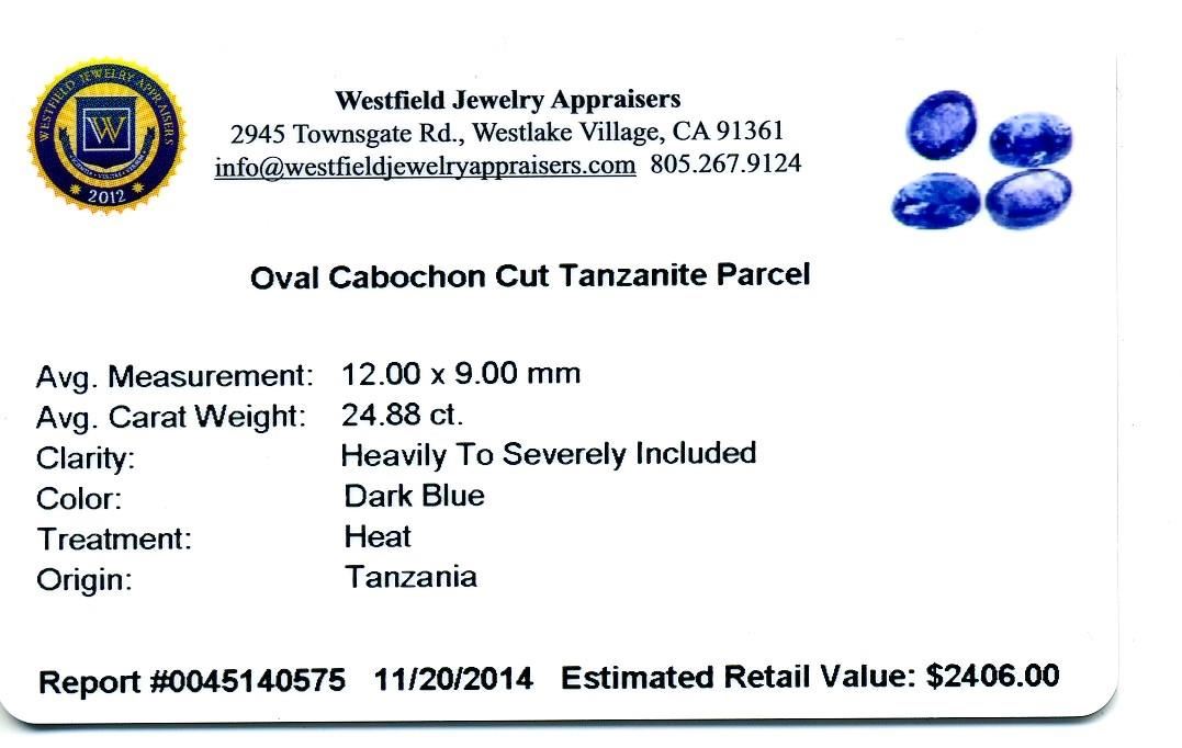 24.88ctw. Oval Cabochon Cut Tanzanite Parcel. Westfield Appraised at $2,406.00.