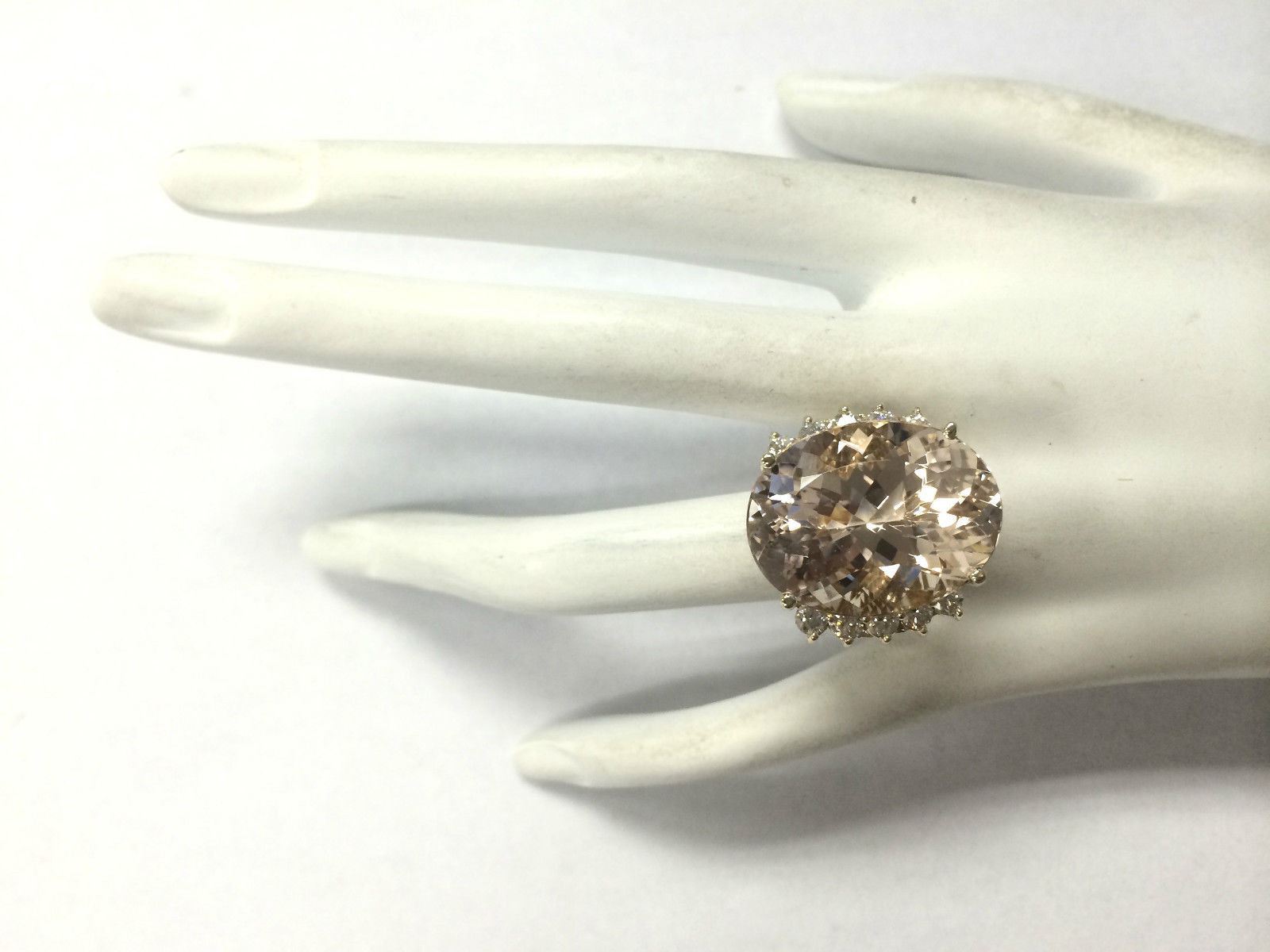 24.99 CTW Natural Morganite And Diamond Ring In 18K Yellow Gold