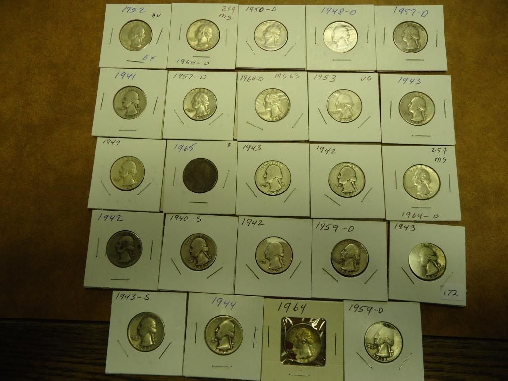24 ASSORTED WASHINGTON SILVER QUARTERS