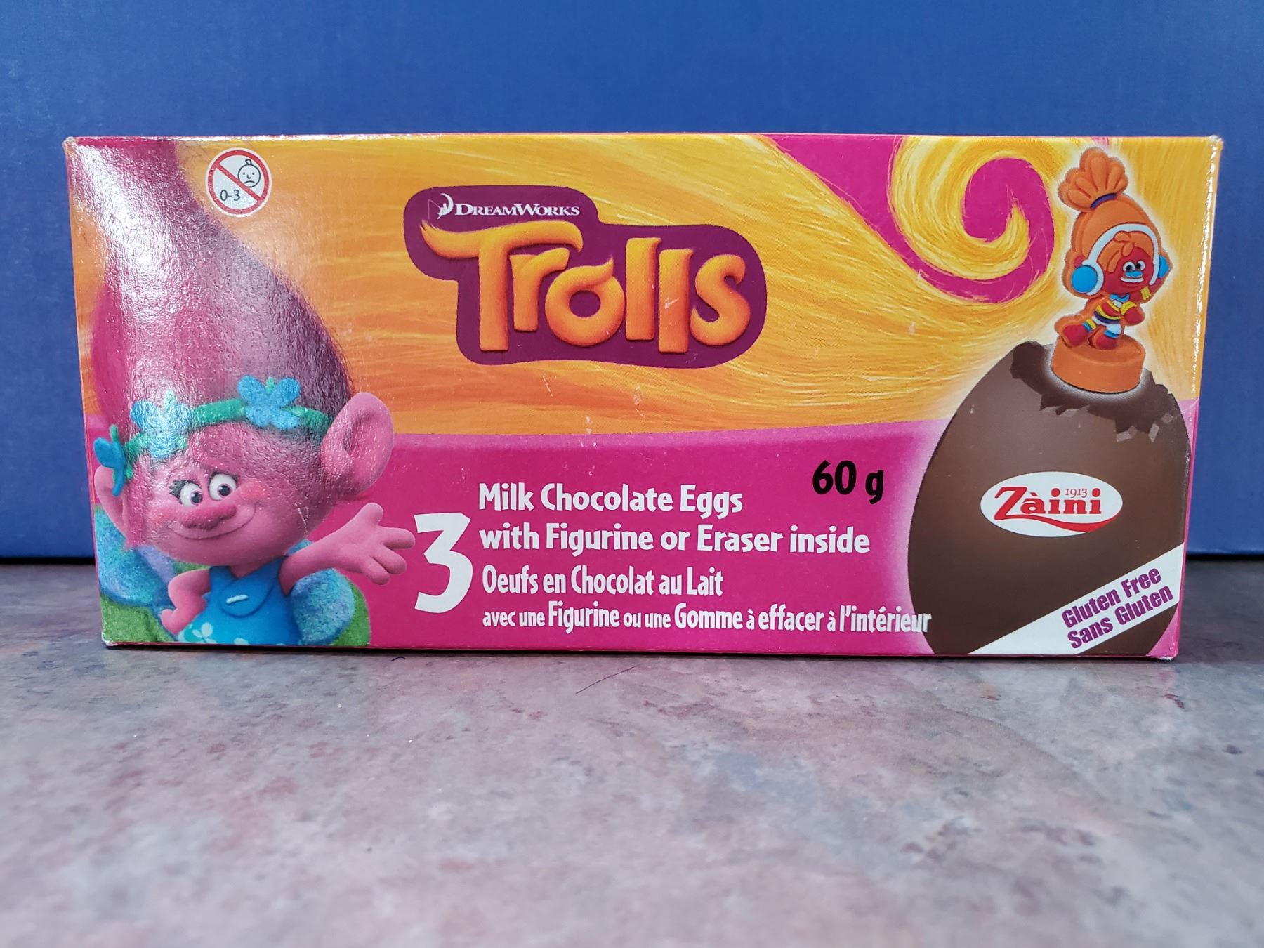 24 BOXES OF 3 PACK 'TROLL MOVIE' CHOCOLATE EGGS