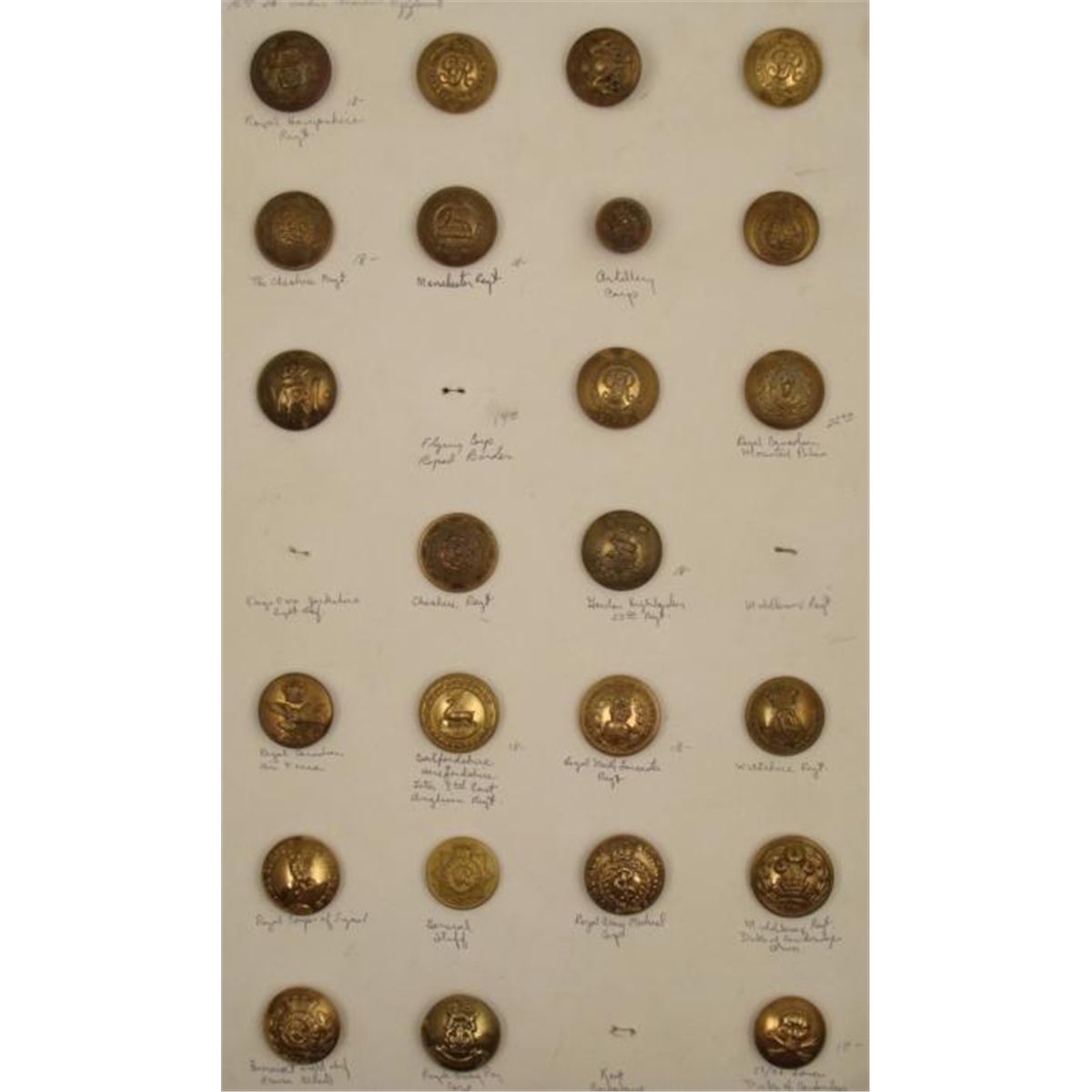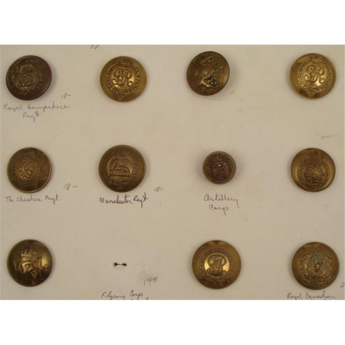 Here we have an antique collection of 21 British and 3 Candadian military buttons. Most of them have been identified by their names which include: Royal Hampshire Regt.., (2) The Chesire Regt., Manchester Regt., Artillery Corp, Royal Canadian Mounted Police, Gordon Highlander 50th Regt. (Canadian), Royal Canadian Air Force, Bedfordshire-Herefordshire Later 3rd East Anglican Regt., Loyal North Lancaster Regt., Wiltshire Regt., Royal Corps of Signal, General Staff, Royal Army Medical Corp, Middlesex Regt. Duke of Cambridge own, Somerset Light Infantry (Prince Alberts), Royal Army Pay Corps, and 17/21 Lancers-Duke of Cambridges own. They range from very good to excellent condition. All are affixed to a card. * These buttons are from a comprehensive military button collection from an estate. They range from the 1800's to WWII, and are being offered in groups by category. Please see our listings now online. *