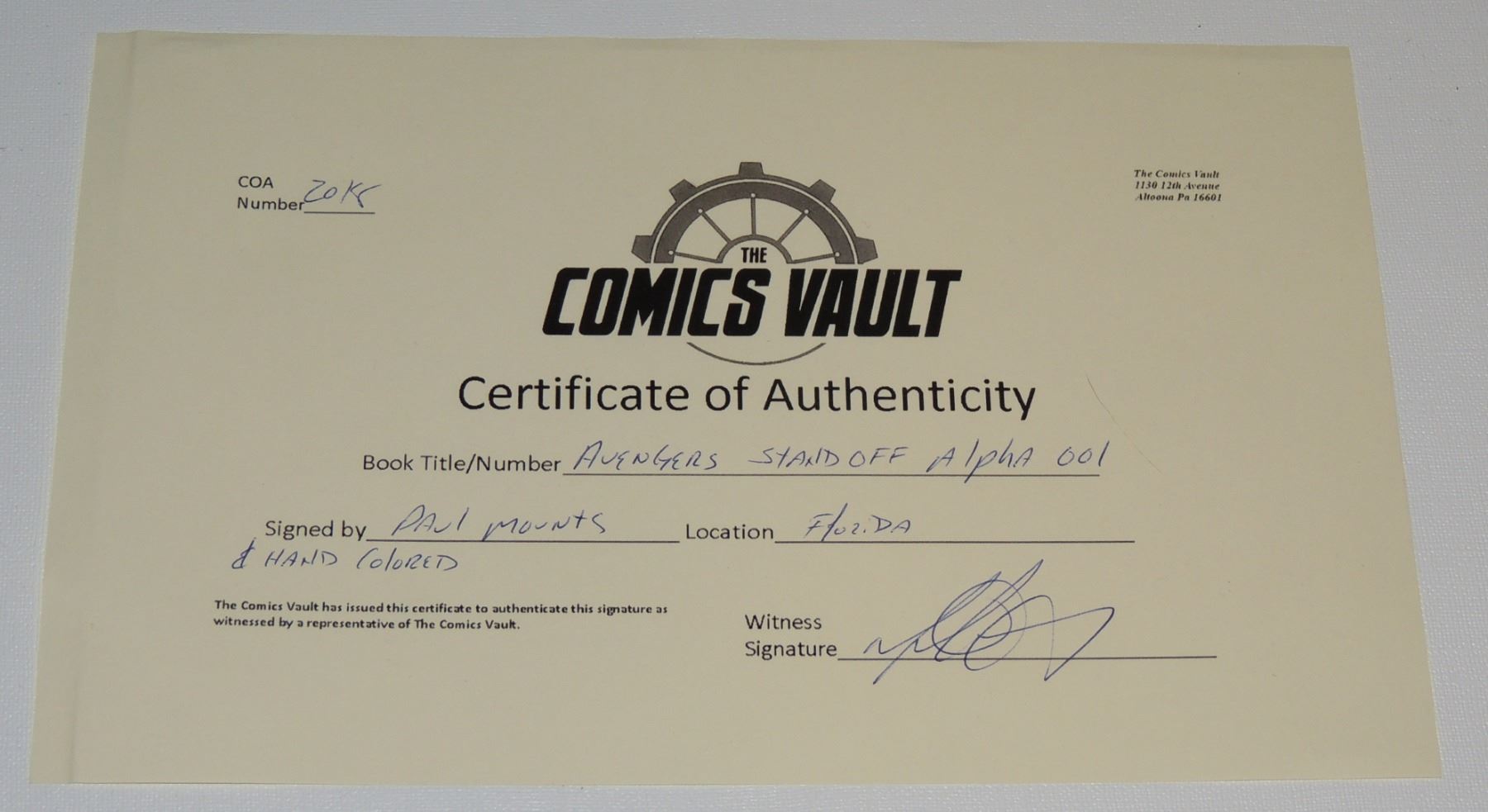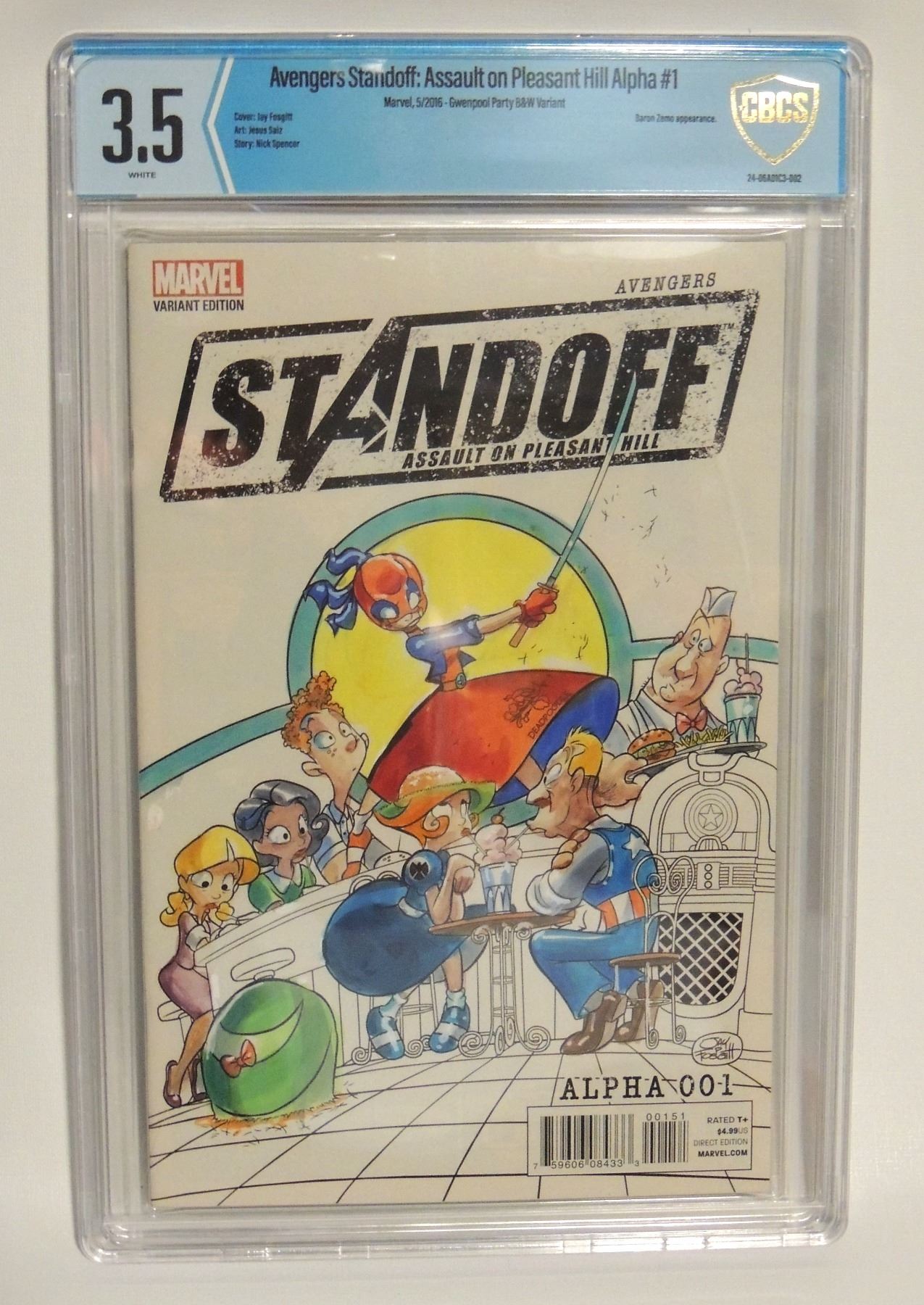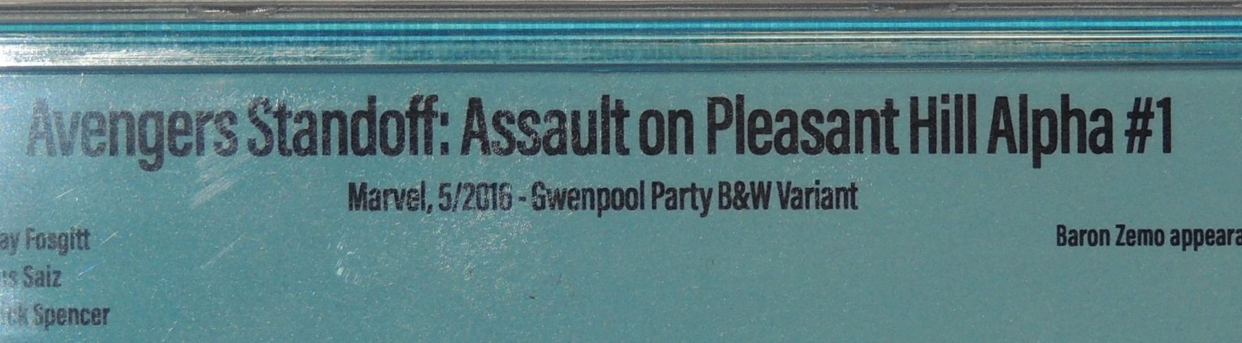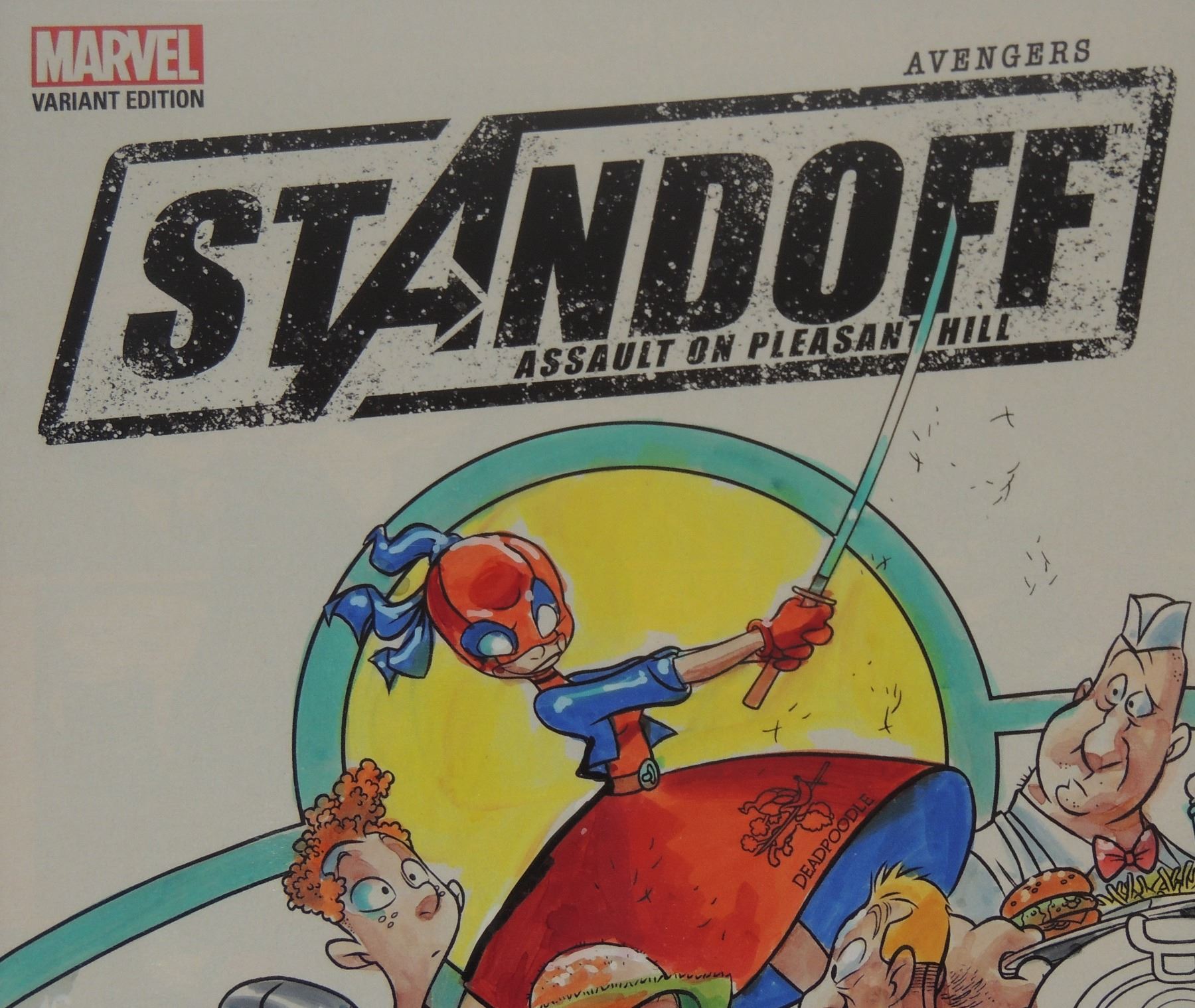 MARVEL COMICS STANDOFF: ASSAULT ON PLEASANT HILL ALPHA #1 MAY 2016 VARIANT COVER WITH COA PAUL MOUNTS HAND COLORED, REASON FOR LOWER GRADE WAS COLORATION DEADPOODLE