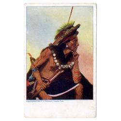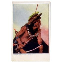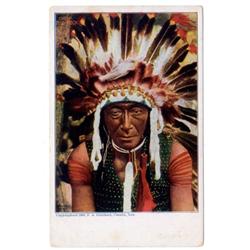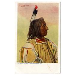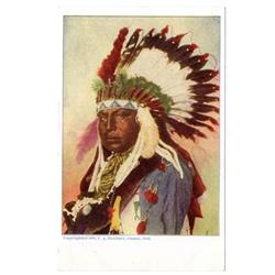 Some duplicates. Subjects include "Clear" (2 copies), "Big Man," Red Cloud (2 copies), Sitting Bull, Wolf Robe (2 copies), Rain in the Face (2 copies), "Big Man," "Chief Bill-Rock," "Chase-in-the-Morning," Geronimo, Yellow Wolf, Wah Ta Waso, Annie Red Shirt, Sioux babies Little Bear and White Bull," "Two Little Braves," Hattie Tom, Eagle Feather & Papoose, "Sioux Squaw and Papoose," Lost Bird (the papoose of the previous,) and one with a black and white print. The print quality is only fair, and there is some wear and soil on many, but these are still vibrant and attractive. Yet let's grade the whole group [2]