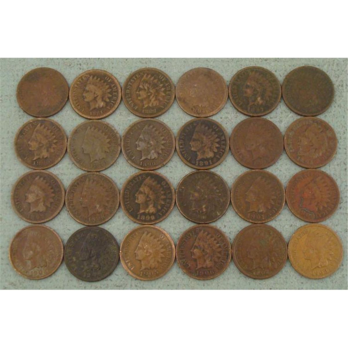 24 Different Date Indian Cents Pennies * Dates: 1890, 1881, 1882, 1884, 1887, 1888, 1889, 1890, 1891, 1892, 1895, 1896, 1897, 1898, 1899, 1900, 1901, 1902, 1903, 1904, 1905, 1906, 1907, 1908