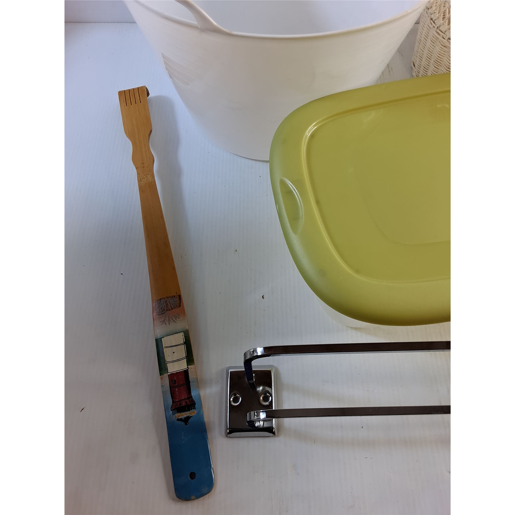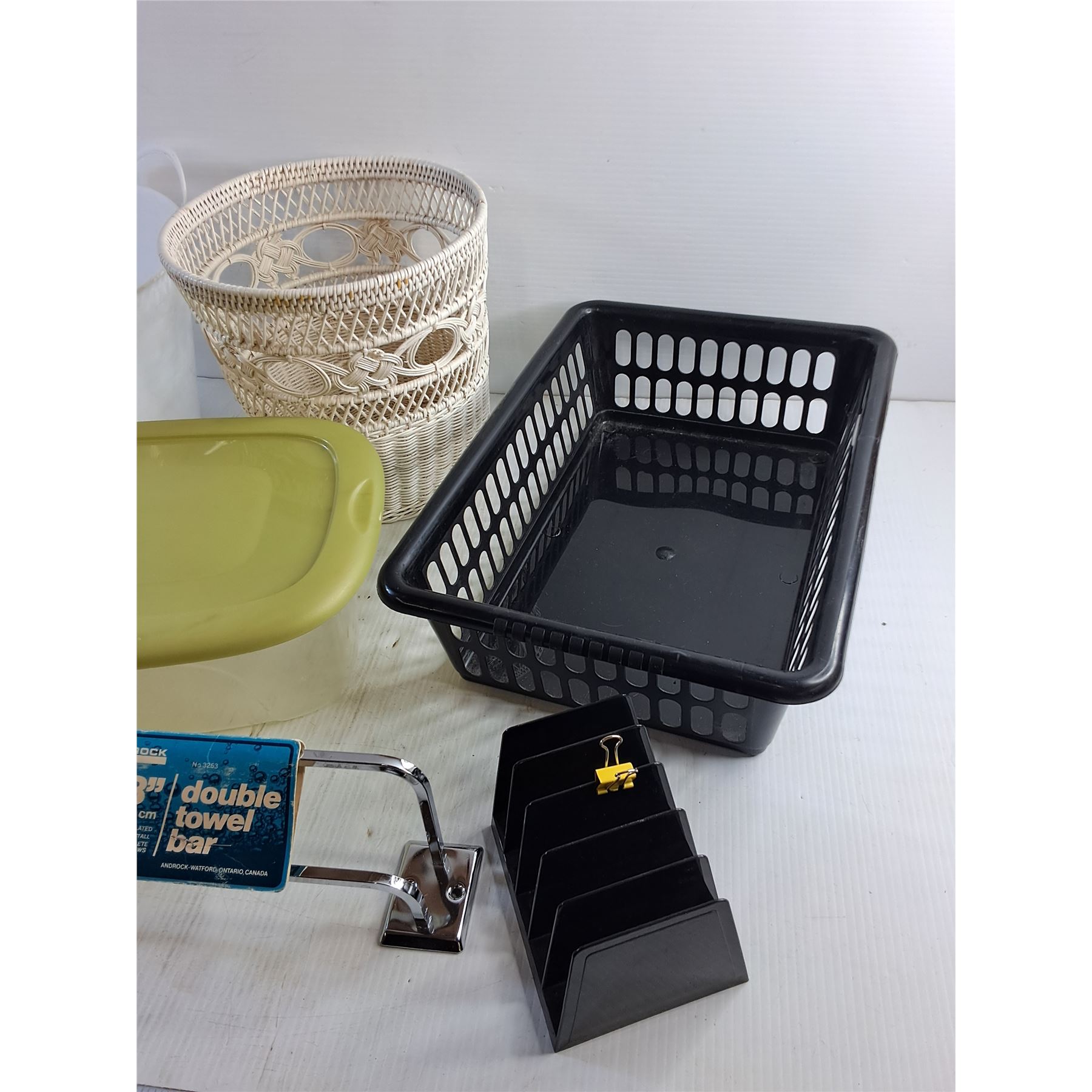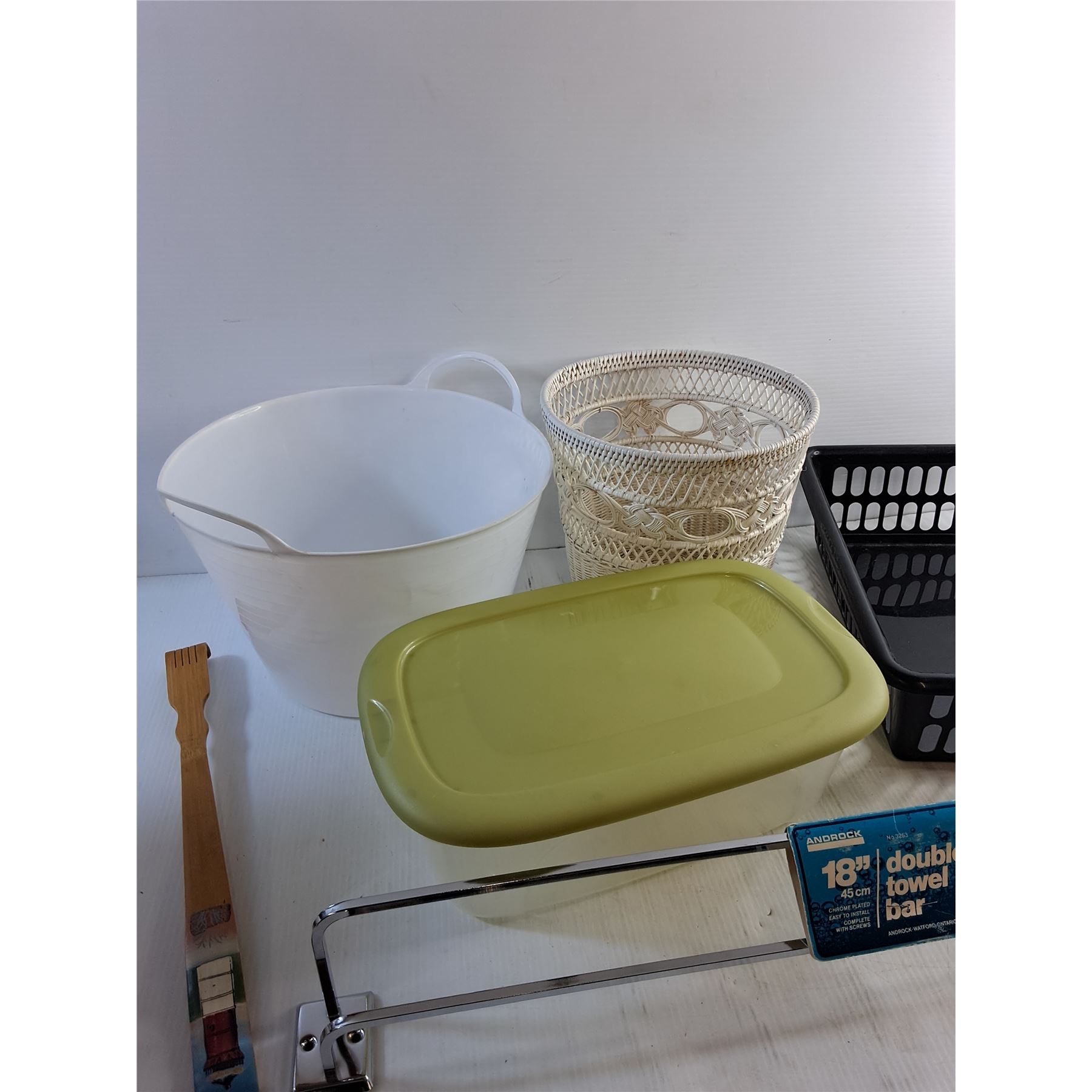 24  Double Towel Bar, Wooden Back Scratcher, Baskets, Container with Lid and Misc