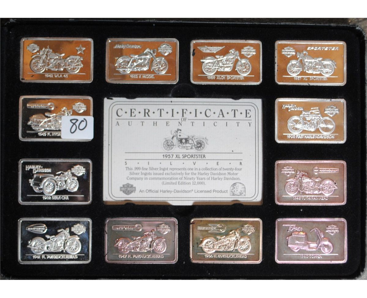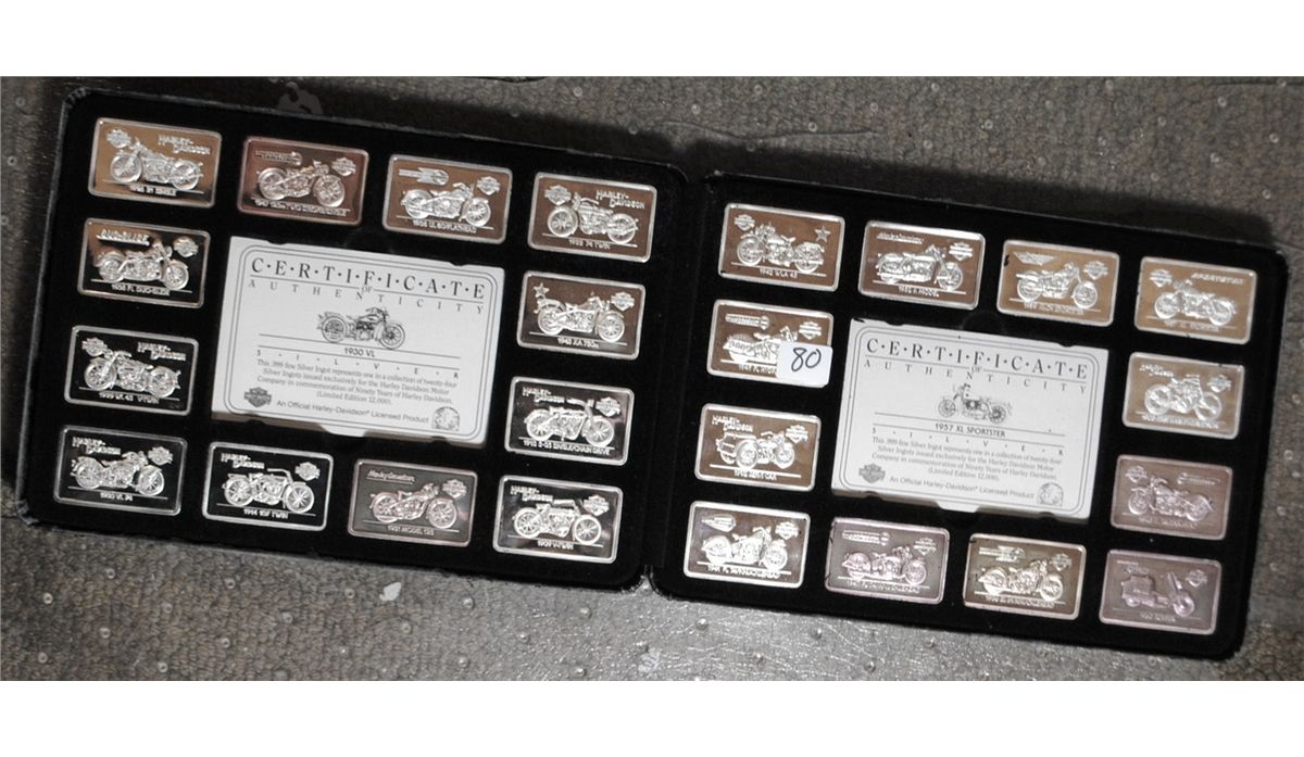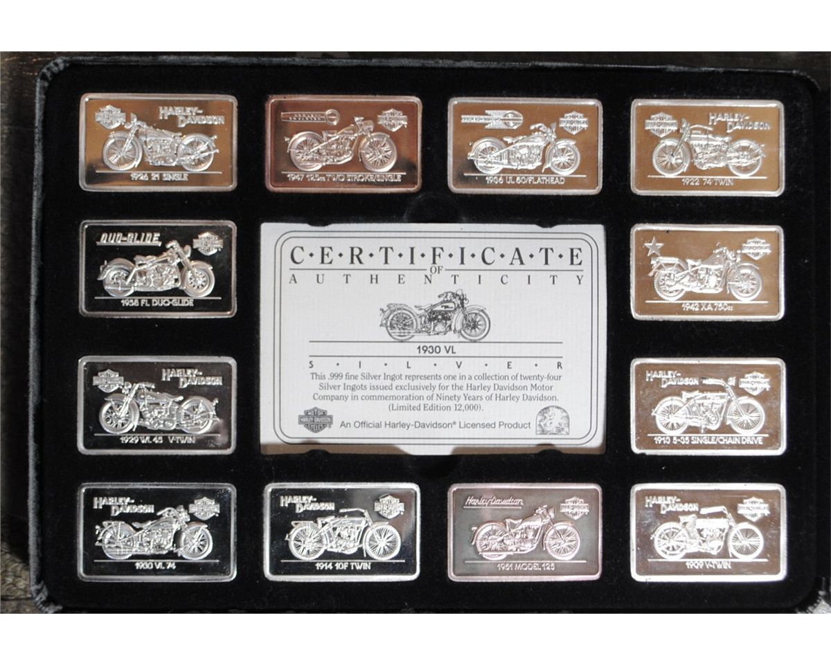 24 HARLEY DAVIDSON .999 FINE SILVER INGOTS - LIMITED EDITION - ALL 24 SILVER INGOTS HAVE A CERTIFICATE OF AUTHENTICITY AND COME IN THE ORIGINAL CASE - SOLD PER INGOT TIMES 24